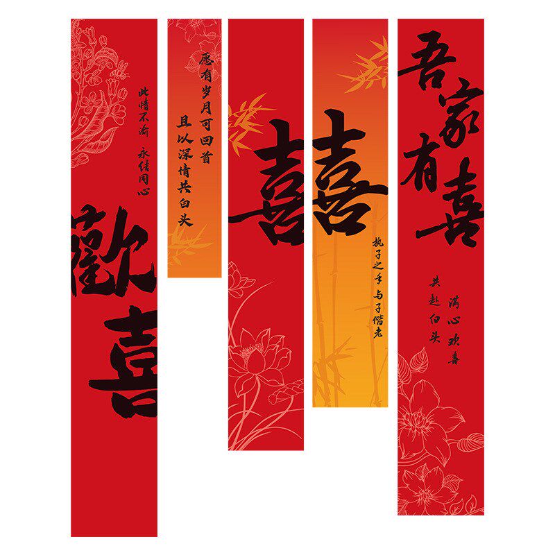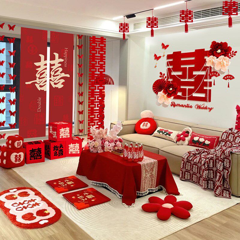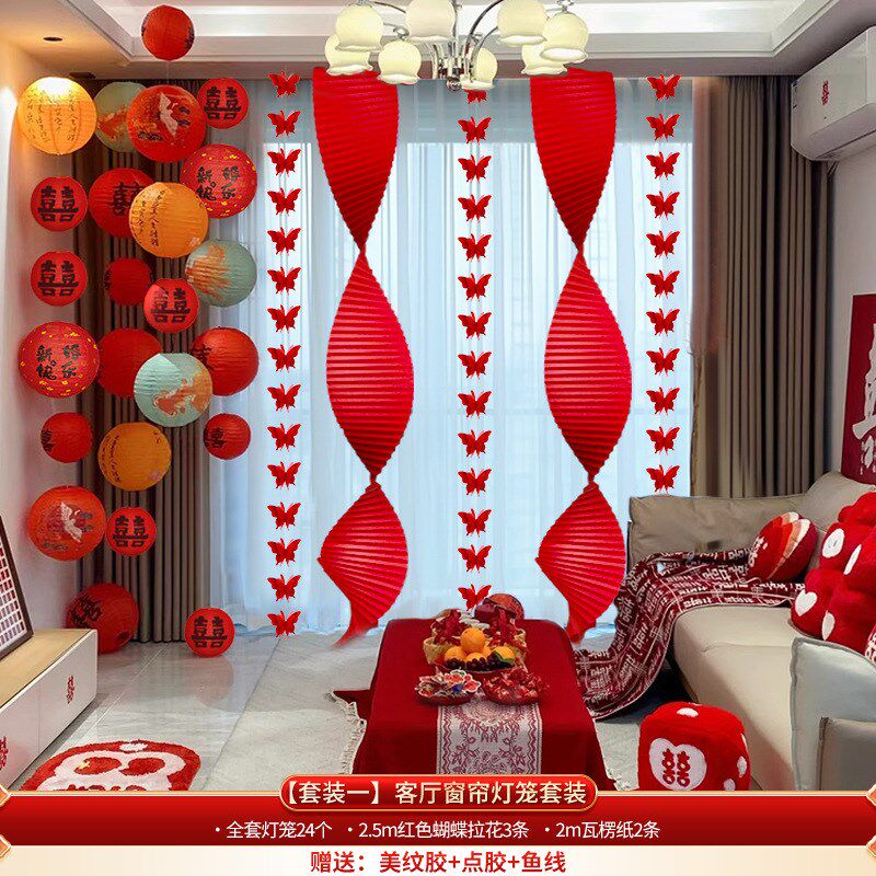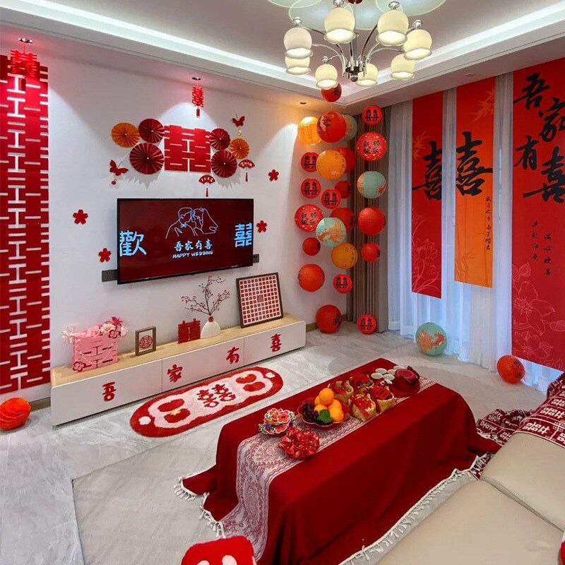 📚 结婚布置喜字拉花装饰灯笼男女方卧室客厅婚礼背景墙拉旗装扮大全