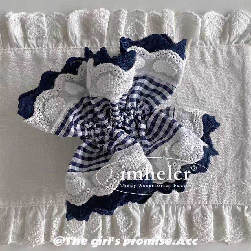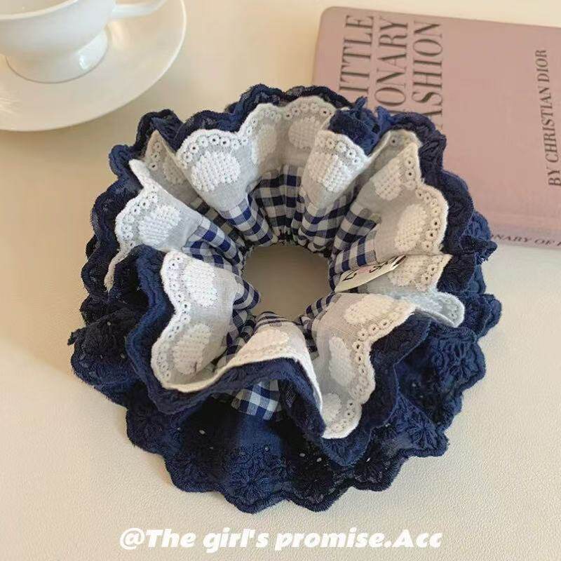 📚 重工蕾丝格纹爱心发圈发绳发饰丸子头马尾高级感百搭低马尾半扎发