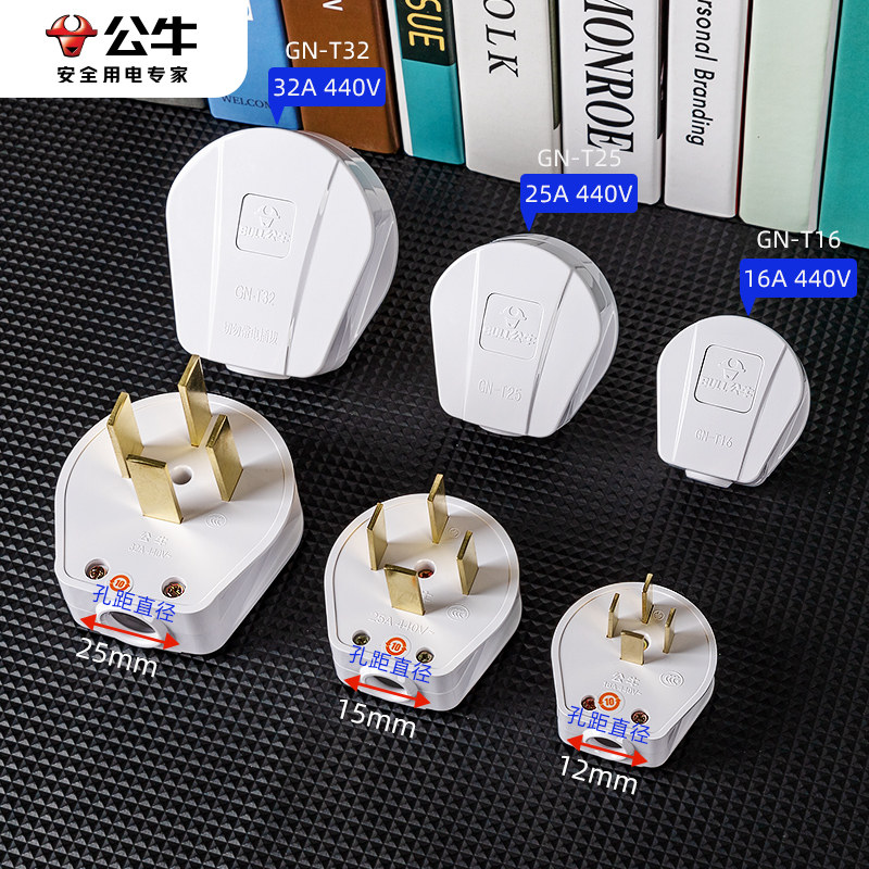 📚 公牛插头25安16A大功率工业插座440伏三相四线电源4脚32A插头380V
