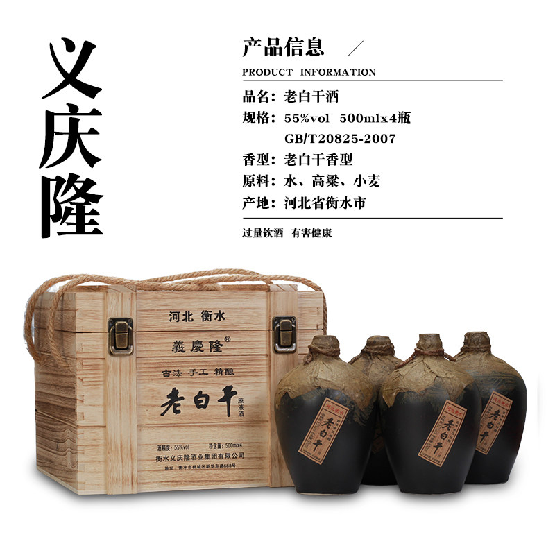 📚 义庆隆 老白干55度 500ml*4瓶木盒装老白干香型白酒河北衡水特产