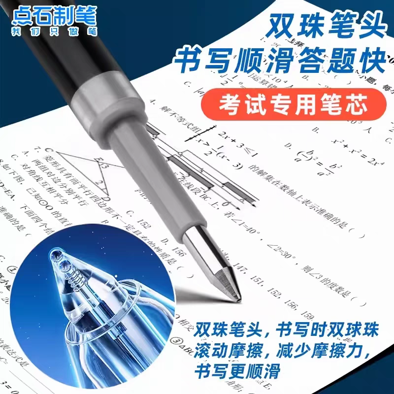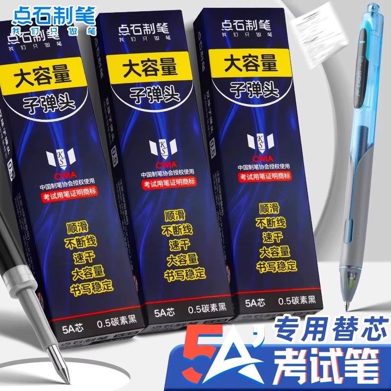 📚 点石制笔5A考试笔按动笔芯双珠静音太空舱速干考试0.5黑色替换芯