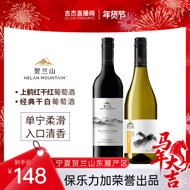 📚 【吉杰直播】贺兰山葡萄酒经典干红干白750ml两支装宁夏东麓红酒