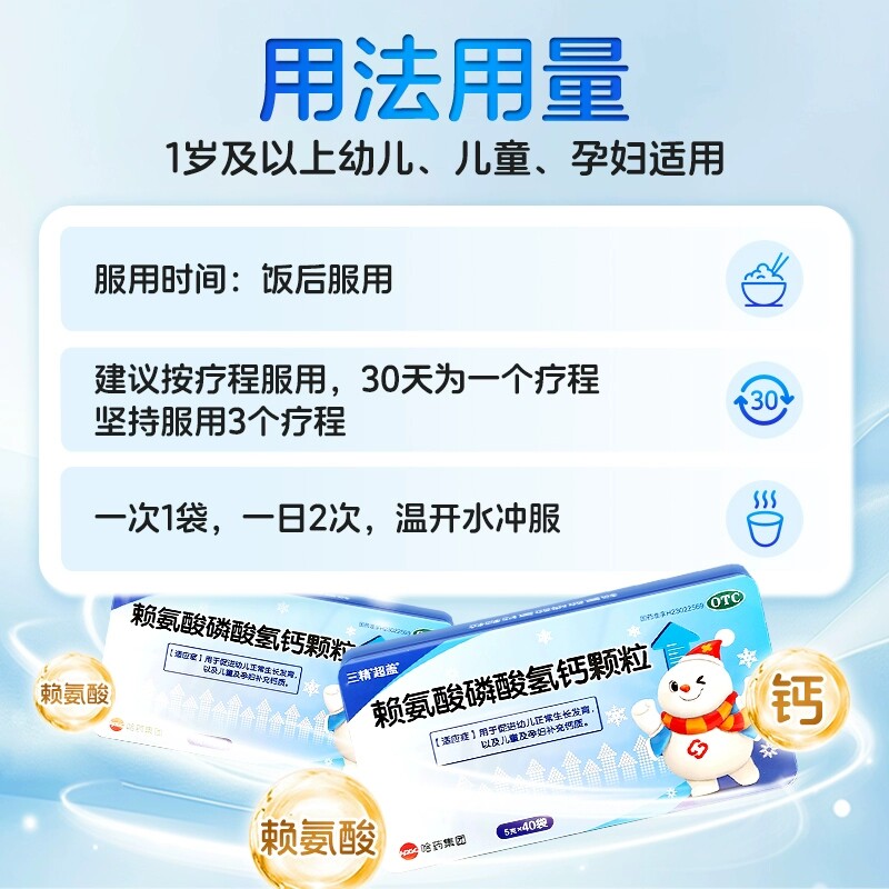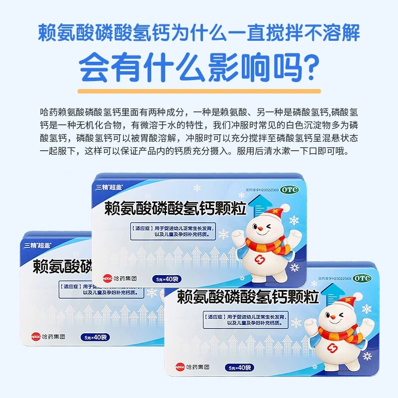 📚 哈药三精赖氨酸磷酸氢钙颗粒5g补钙成长青少年儿童非赖氨葡锌