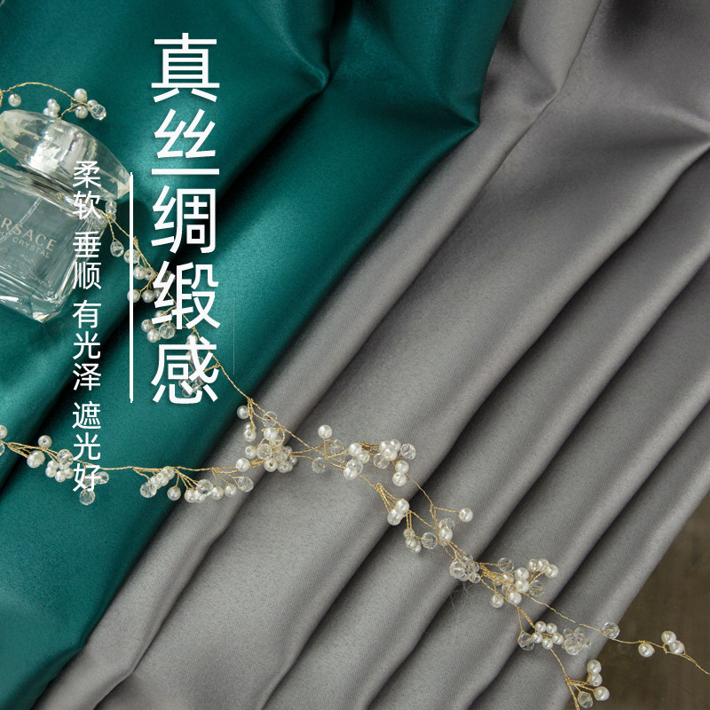 📚 轻奢全遮光窗帘成品简约现代纯色仿真丝绸缎布料客厅卧室落地飘窗