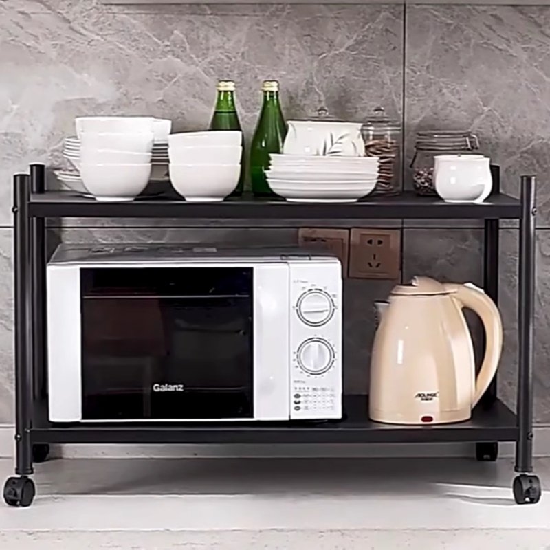 📚 二层厨房置物架落地可移动带轮台面烤箱架双层微波炉架两层收纳架