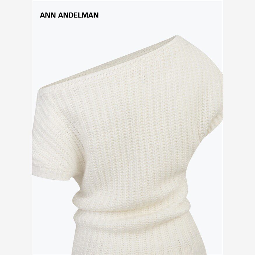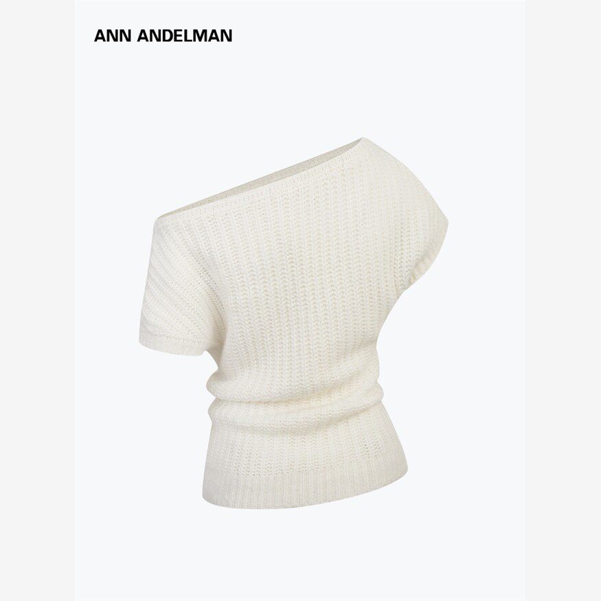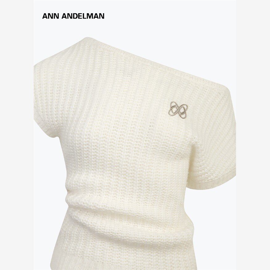 📚 ANN ANDELMAN毛感珠地斜肩上衣针织衫女秋季羊毛短袖氛围感穿搭