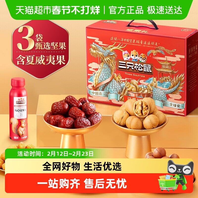 📚 三只松鼠锦意礼坚果零食礼礼盒春节送礼零食大礼包送长辈健康年货