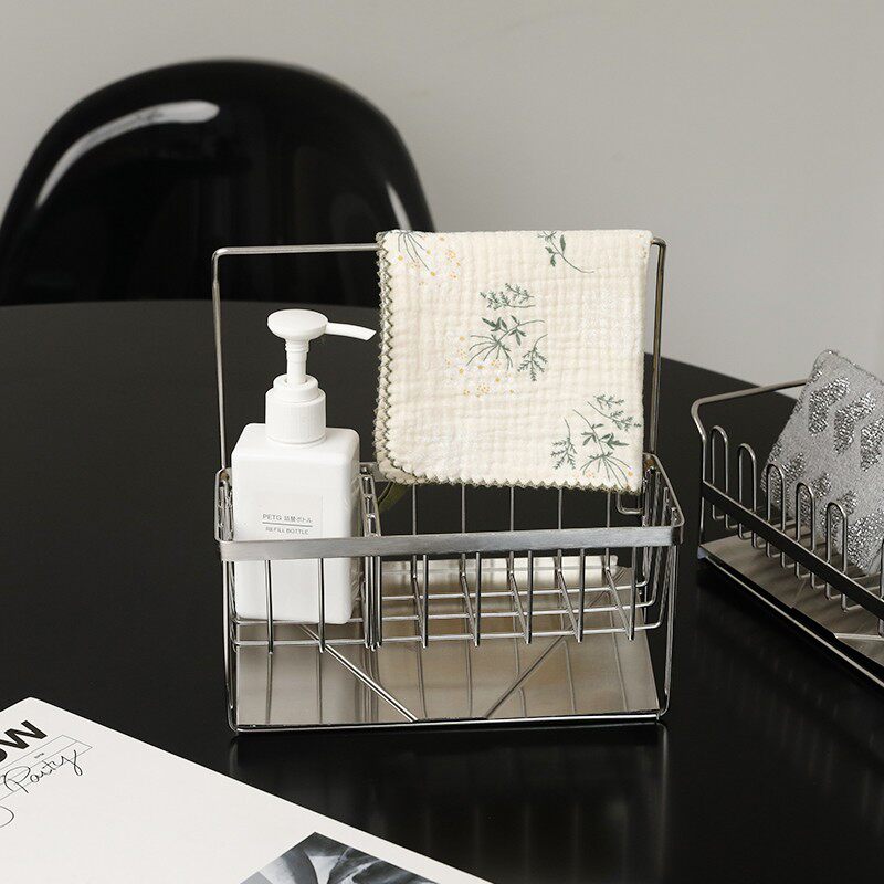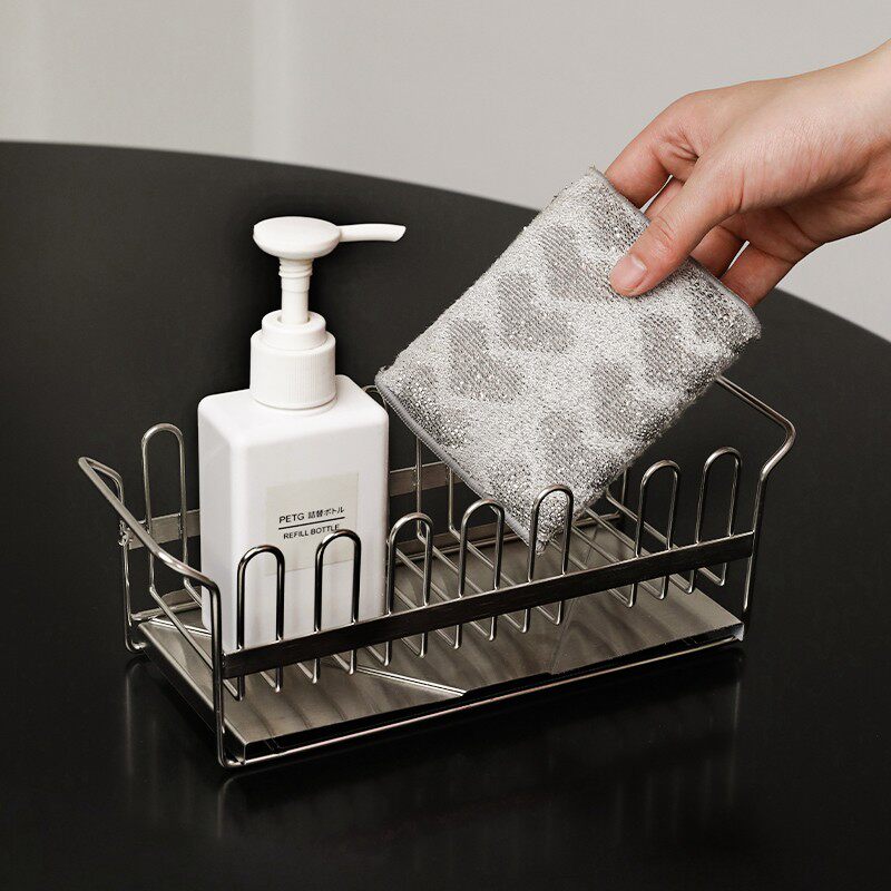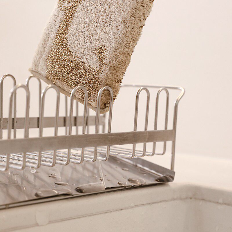 📚 厨房水槽洗碗布沥水架水池台面式抹布置物架不锈钢海绵擦收纳神器
