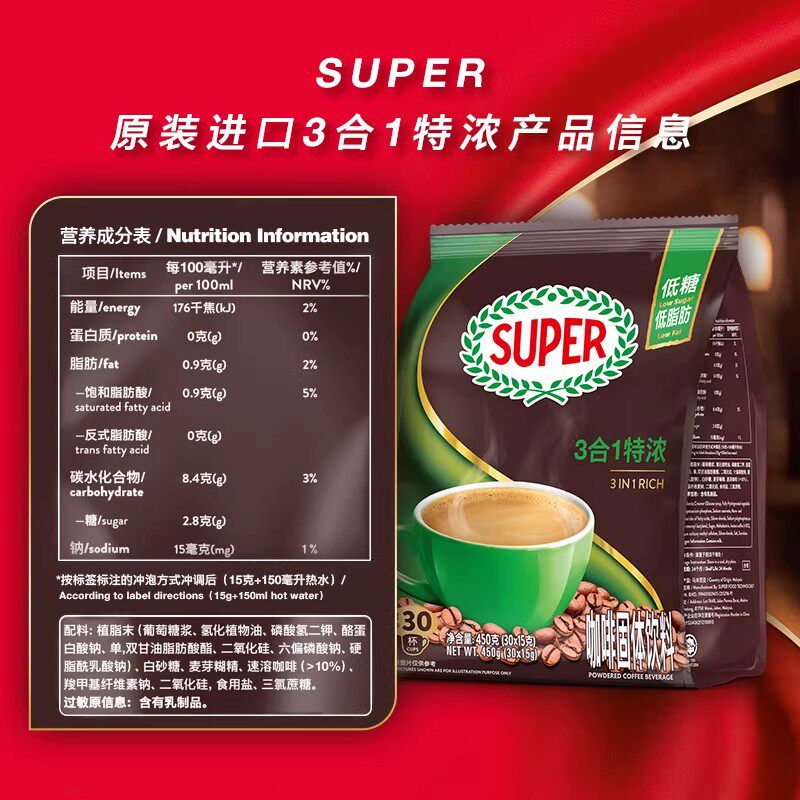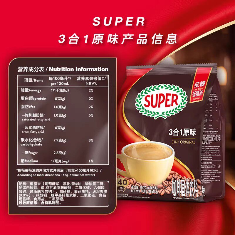 📚 super超级马来西亚原装进口超级原味咖啡3合1速溶咖啡600g/袋装