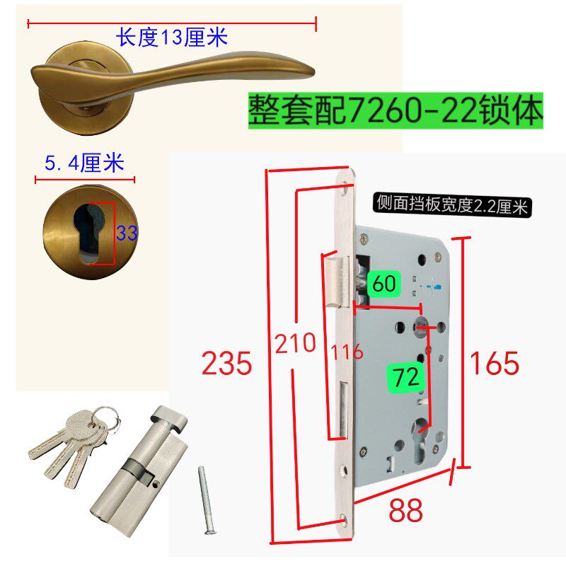 📚 替恒大分体锁金色门把手室内卧室房间E门锁L具执手锁压把锁7260锁