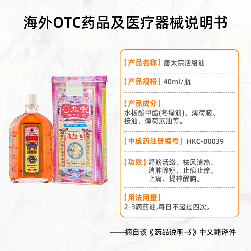 📚 香港原装进口唐太宗活络油40ml跌打伤痛舒筋活络祛风清热提神消肿