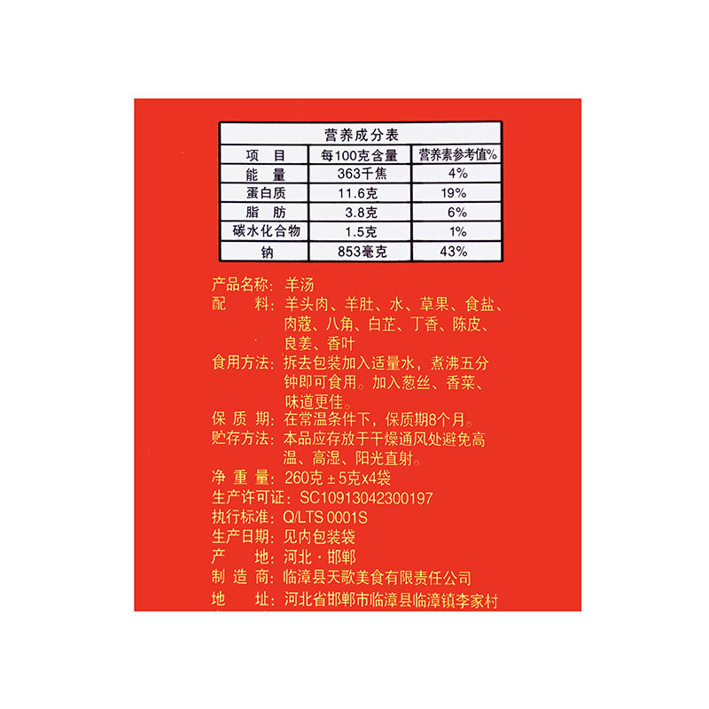 📚 河北特产临漳羊汤大锅羊汤羊杂汤天歌古邺羊杂汤260g*4袋礼盒装