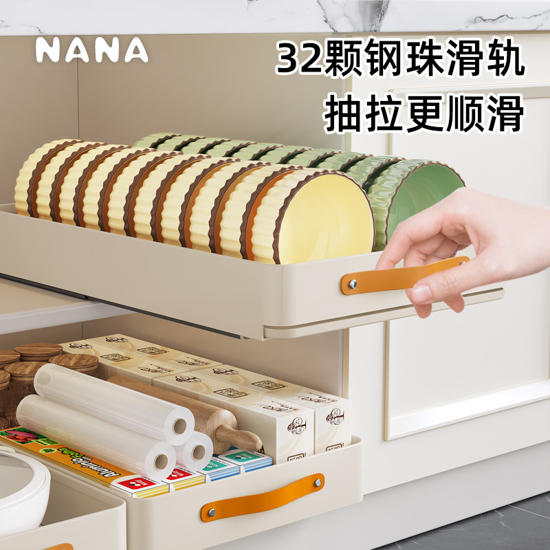 📚 碗碟收纳架橱柜拉篮厨房柜内碗盘碗具沥水架抽屉式置物架抽拉碗架