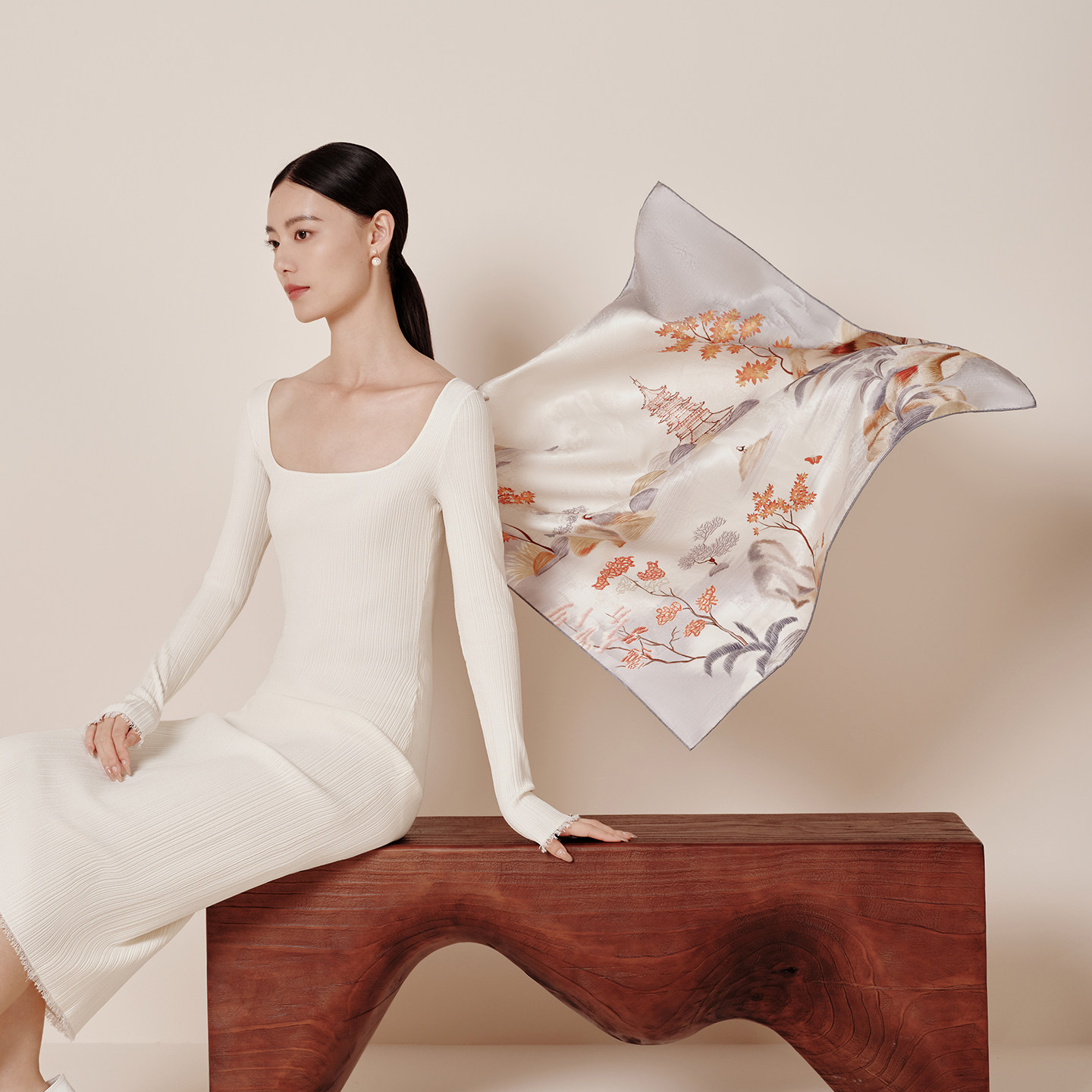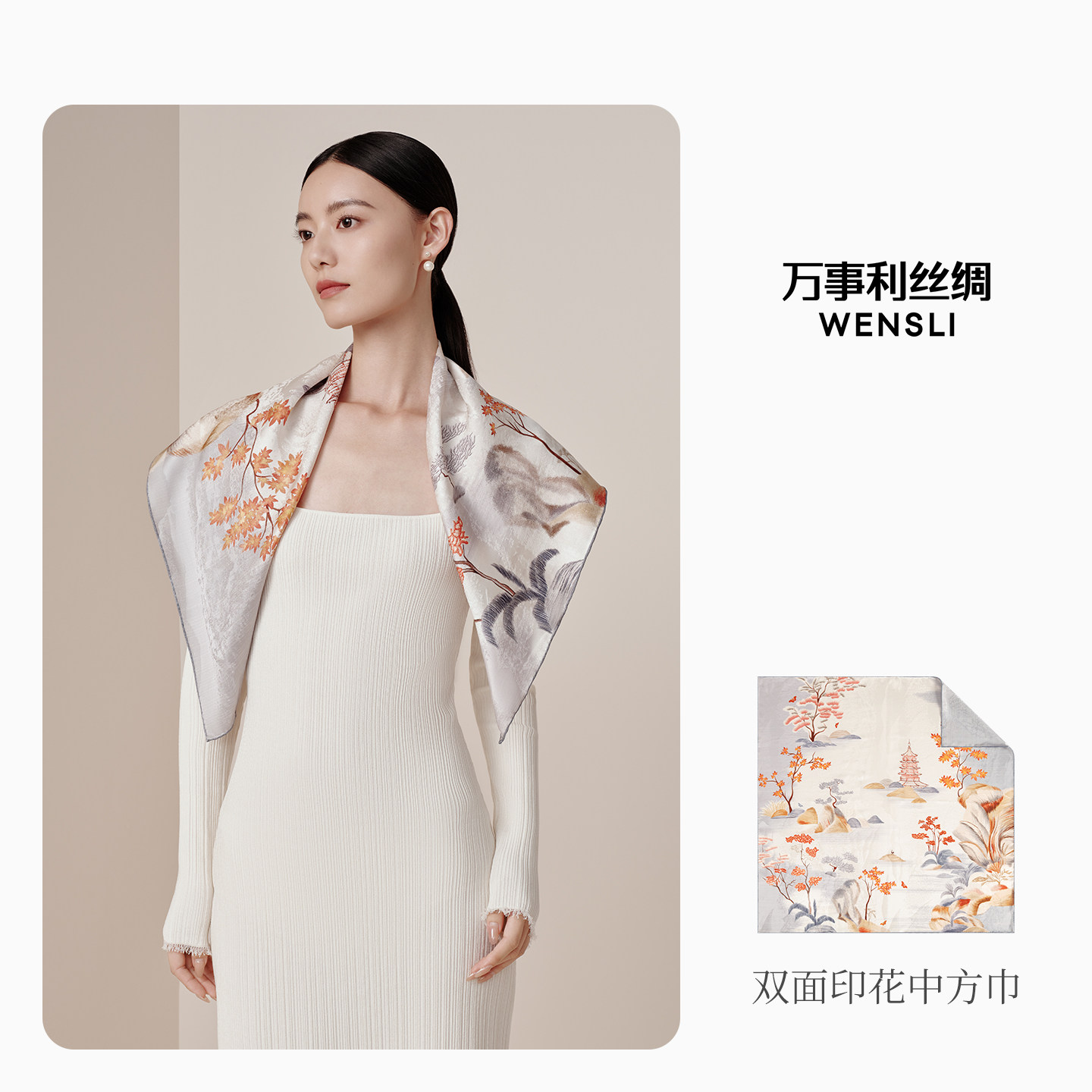 📚 万事利重磅19姆米真丝丝巾女提花手工卷边工艺桑蚕丝中方巾杭城韵