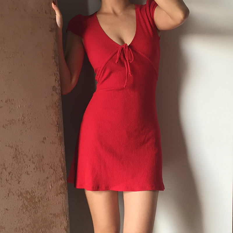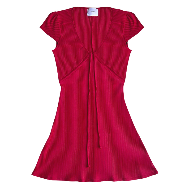 📚 BERAN独家定制 复古深V节日度假系带收腰短袖连衣裙小红裙圣诞节