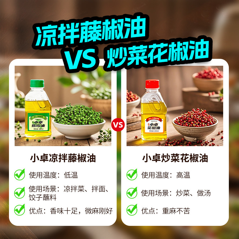📚 小卓四川汉源正宗纯花椒油特麻藤椒油凉拌专用调味油小瓶麻油家用