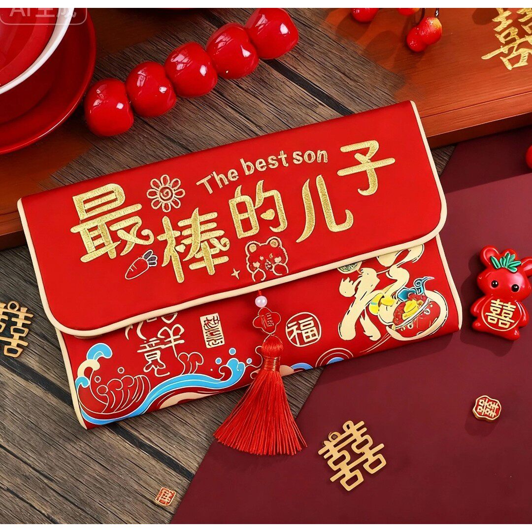 📚 [送背绳]]送给外孙子孙女马年红包布艺刺绣2026新款压岁包利是封