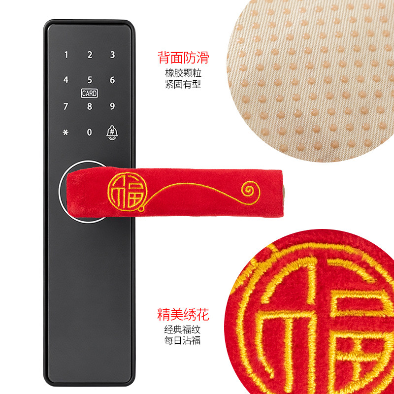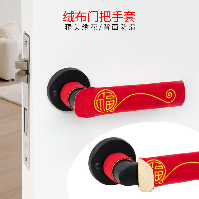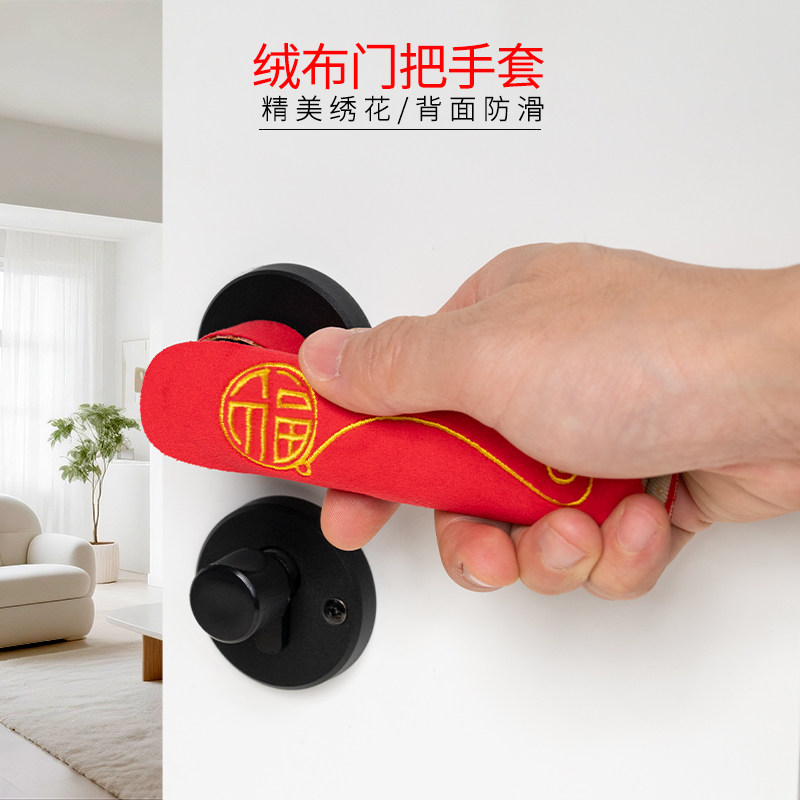 📚 2025新款绒布入户门把手保护套智能指纹锁防撞大号可爱房门把手套
