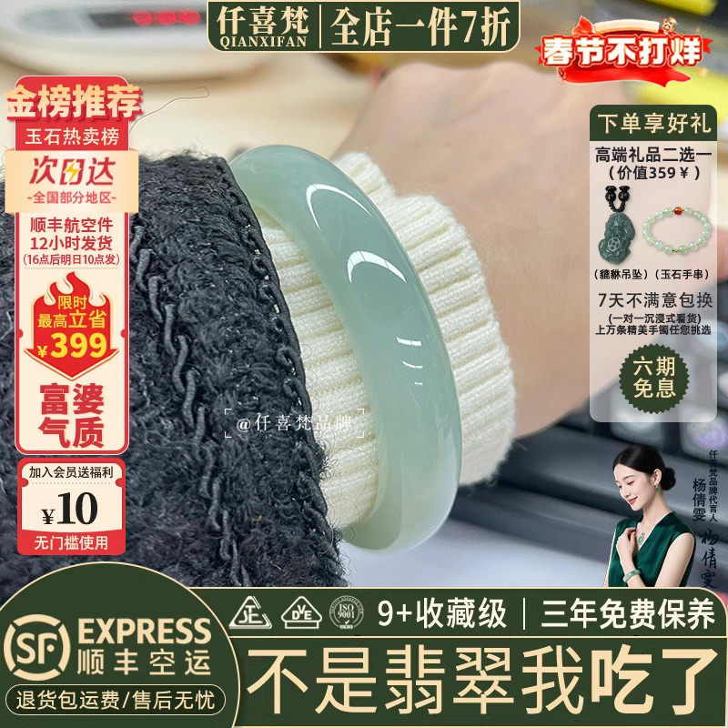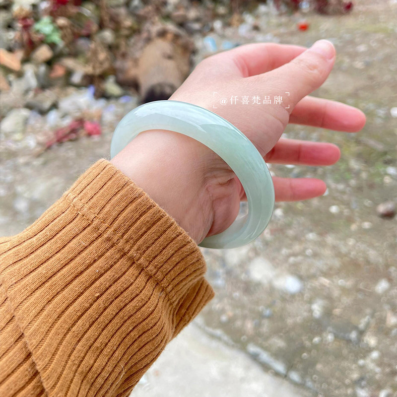 📚 仟喜梵“鹤梦雾萝”缅甸冰种翡翠玉手镯子女款纯色冰飘花玉石处理
