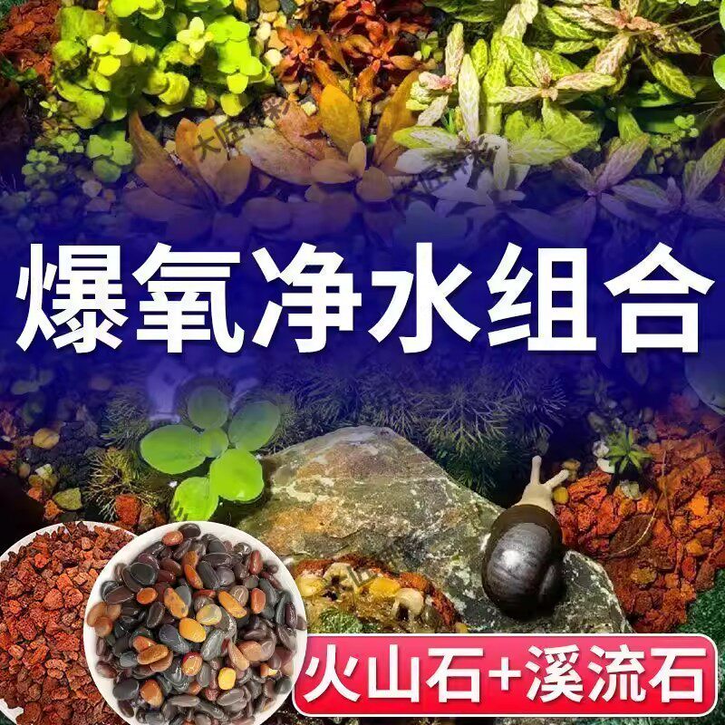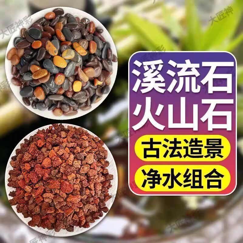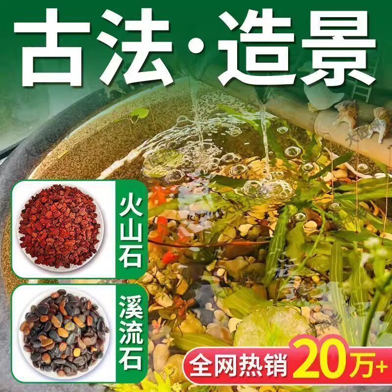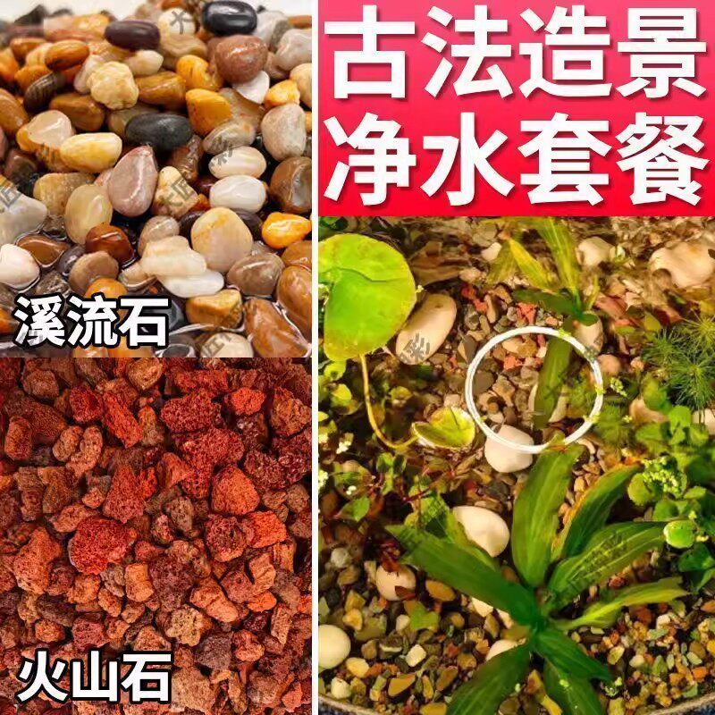 📚 火山石溪流石套餐鱼缸底部砂石造景装饰专用摆件铺底原生水族颗粒