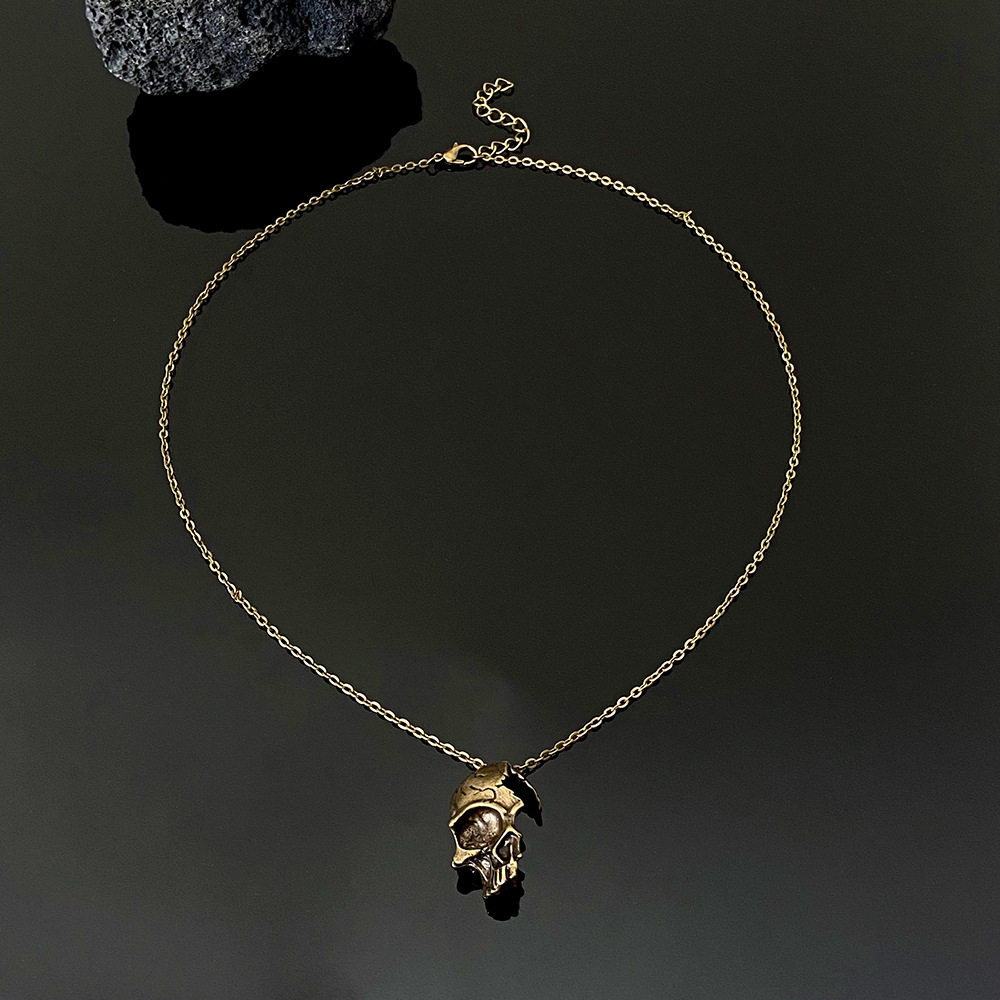 📚 half face skull male necklace men's retro Skeleton jewelry饰