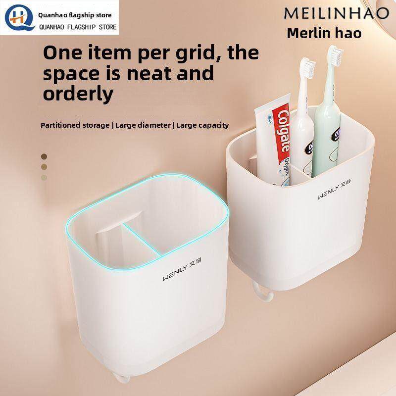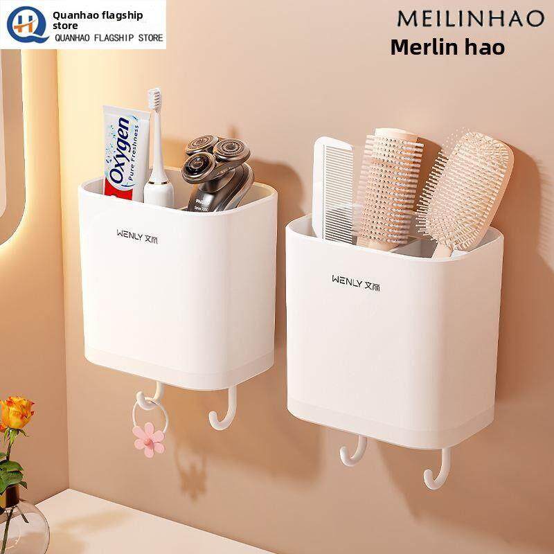 📚 梳子收纳筒卫生间置物架壁挂式墙上牙刷牙膏盒神器放头梳的免打孔