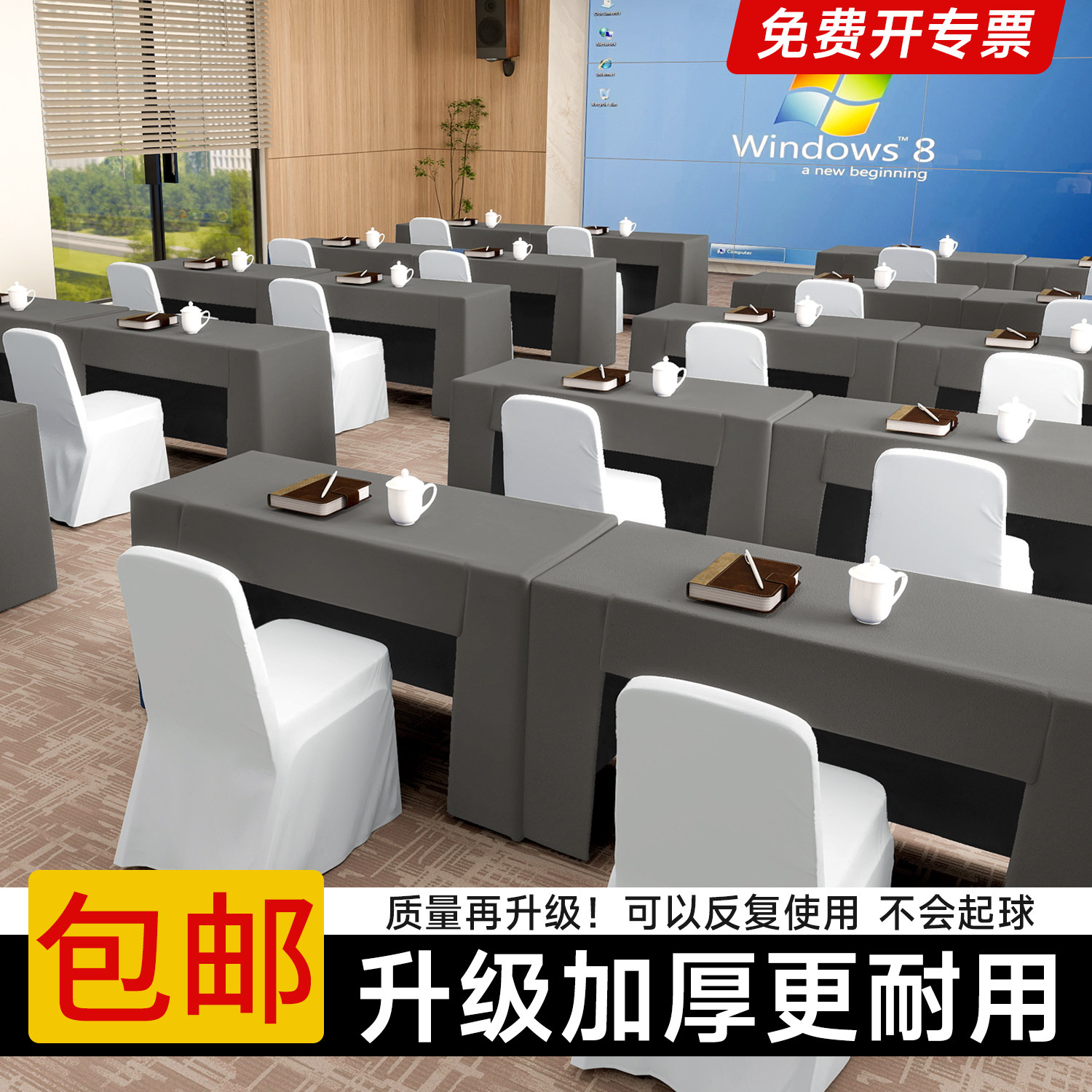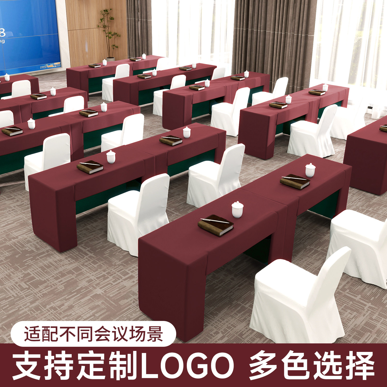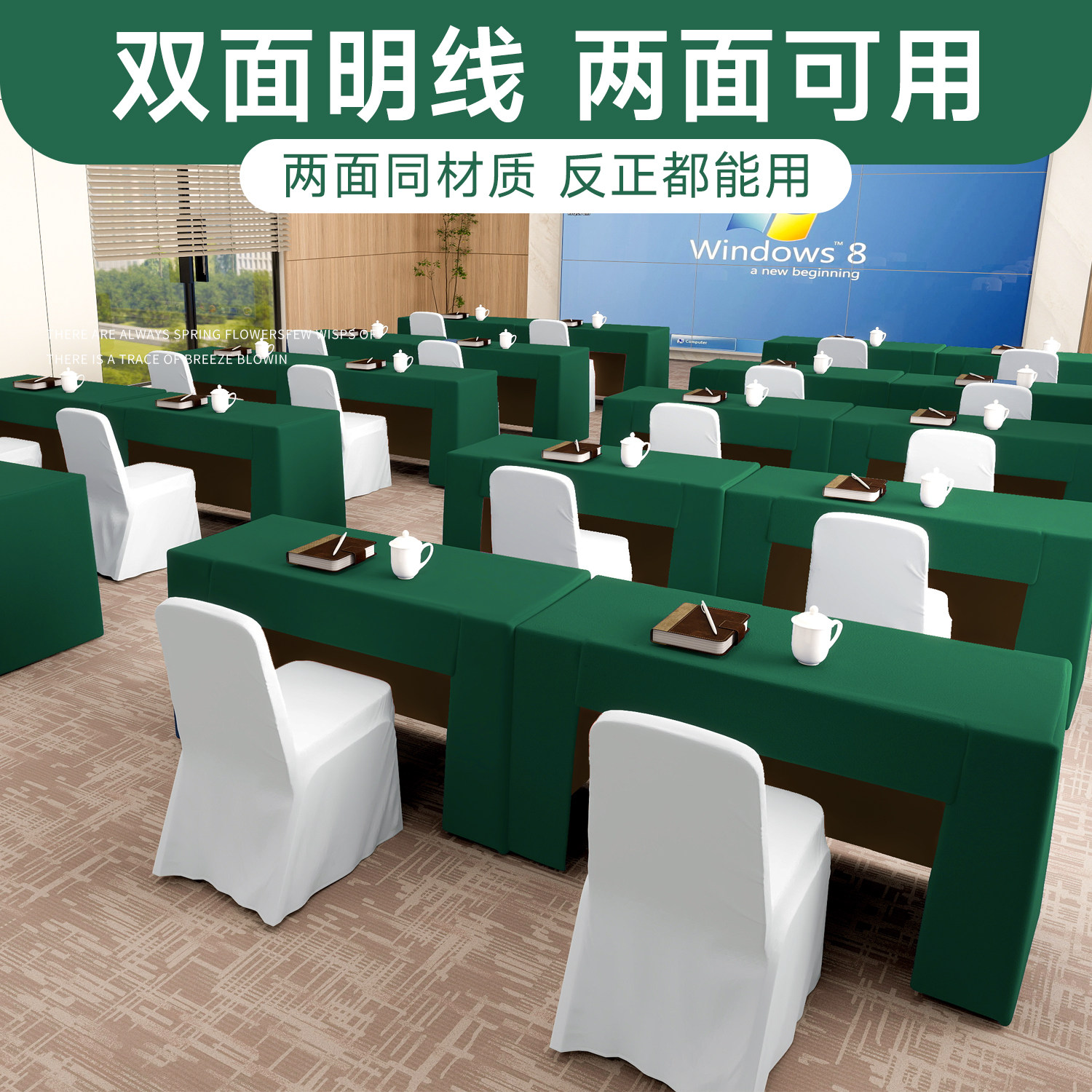 📚 会议桌桌布长方形定制双面色加厚台布高端酒店会议台呢桌罩桌套