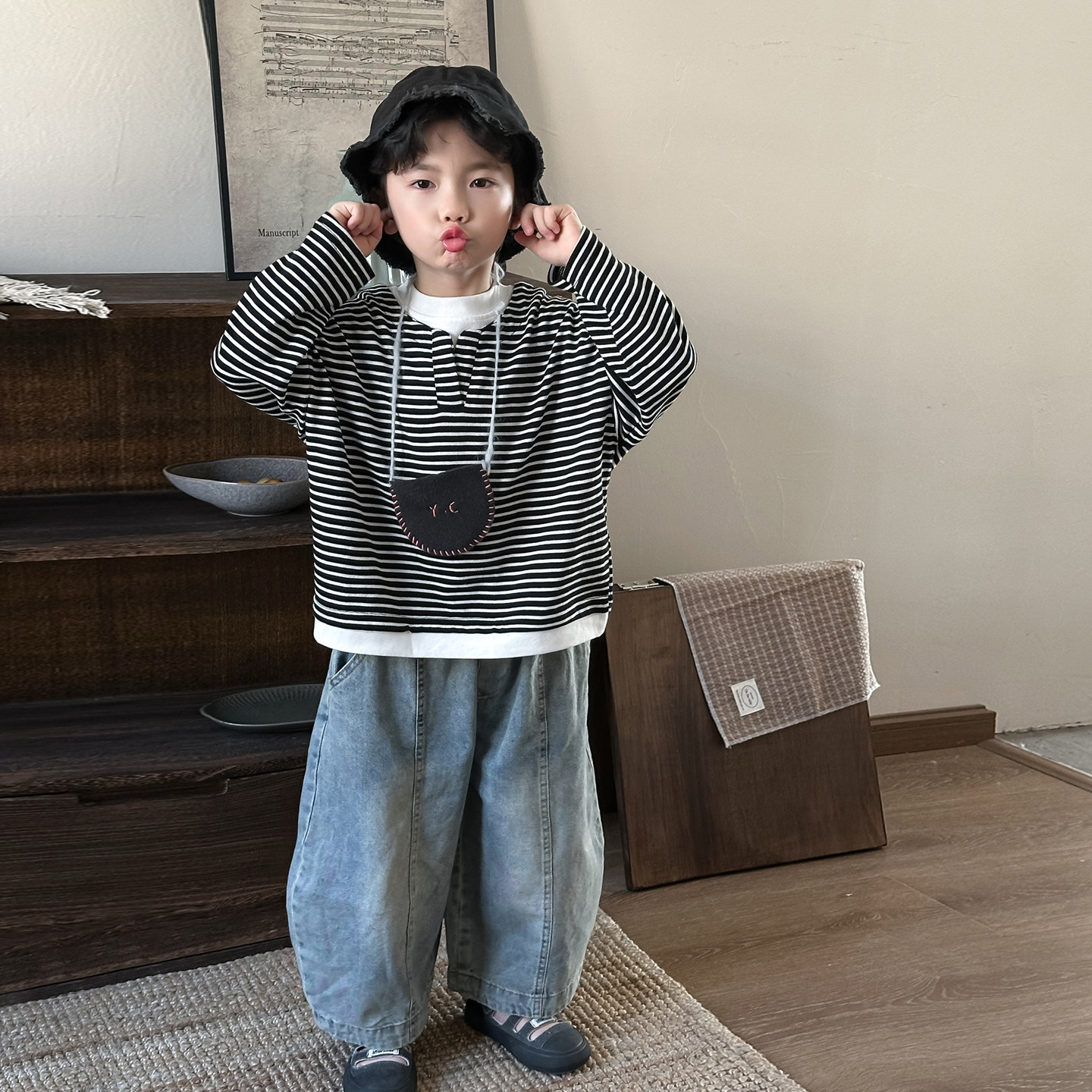 📚 暮晨家新款春夏2026男童做旧磨白浅色牛仔裤中小童宽松九分弯刀裤