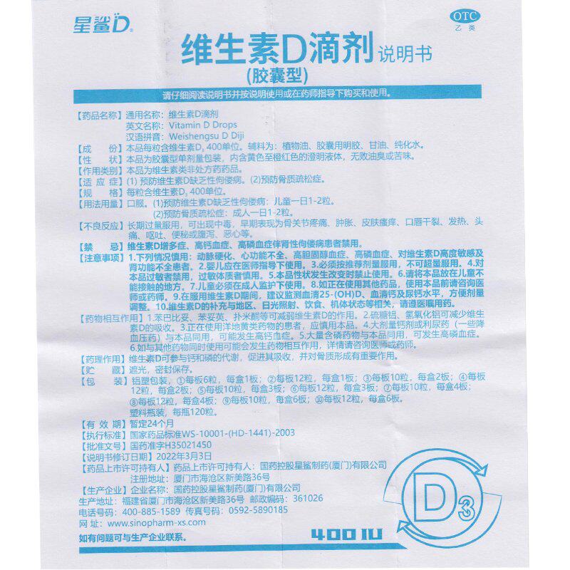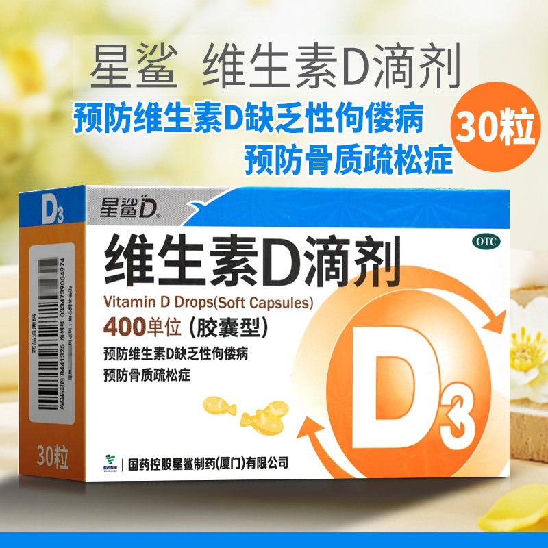 📚 星鲨维生素D滴剂30粒 预防和治疗维生素D缺乏症佝偻病 骨质疏松