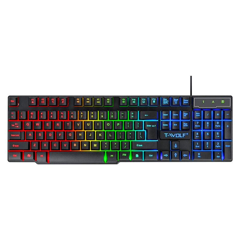 📚 T-WOLF雷狼T20游戏键盘RGB发光有线机械手感电脑公俄文西班牙文