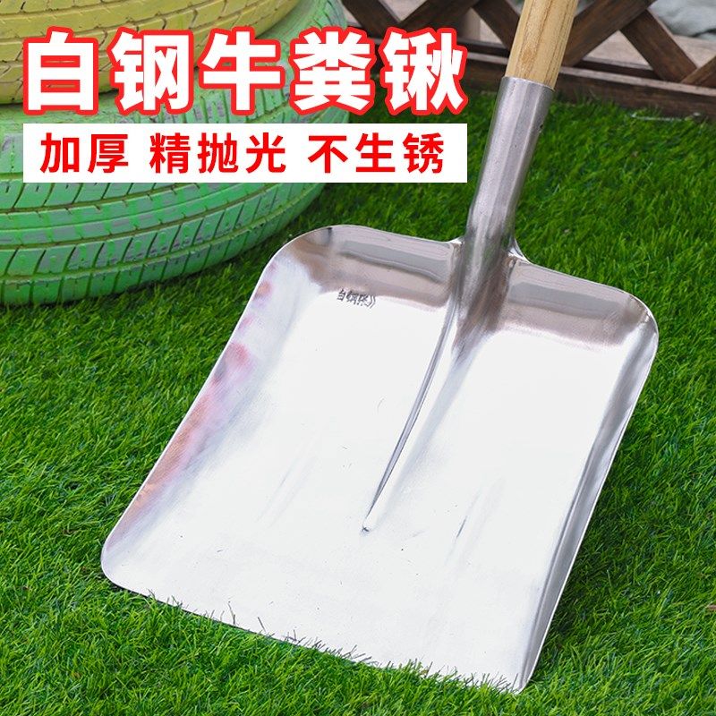 📚 白钢大号方锹不锈钢牛粪锹养殖场粮食清粪铲子平头加厚钢锹铁锹