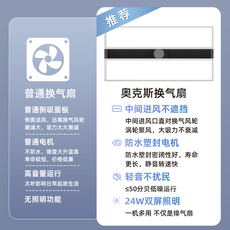 📚 奥克斯照明换气二合一卫生间排气扇一体式无界照明大换气