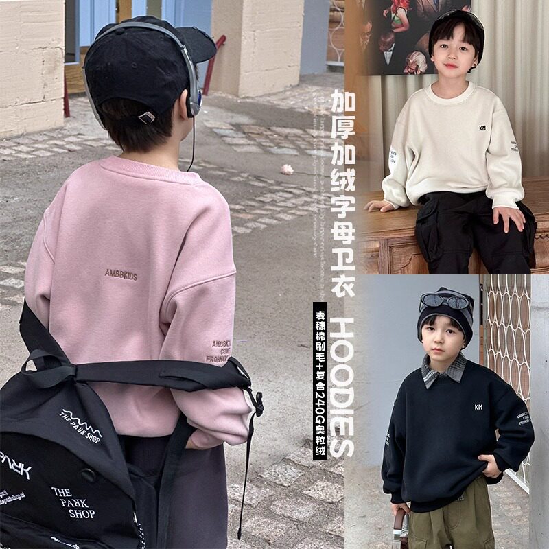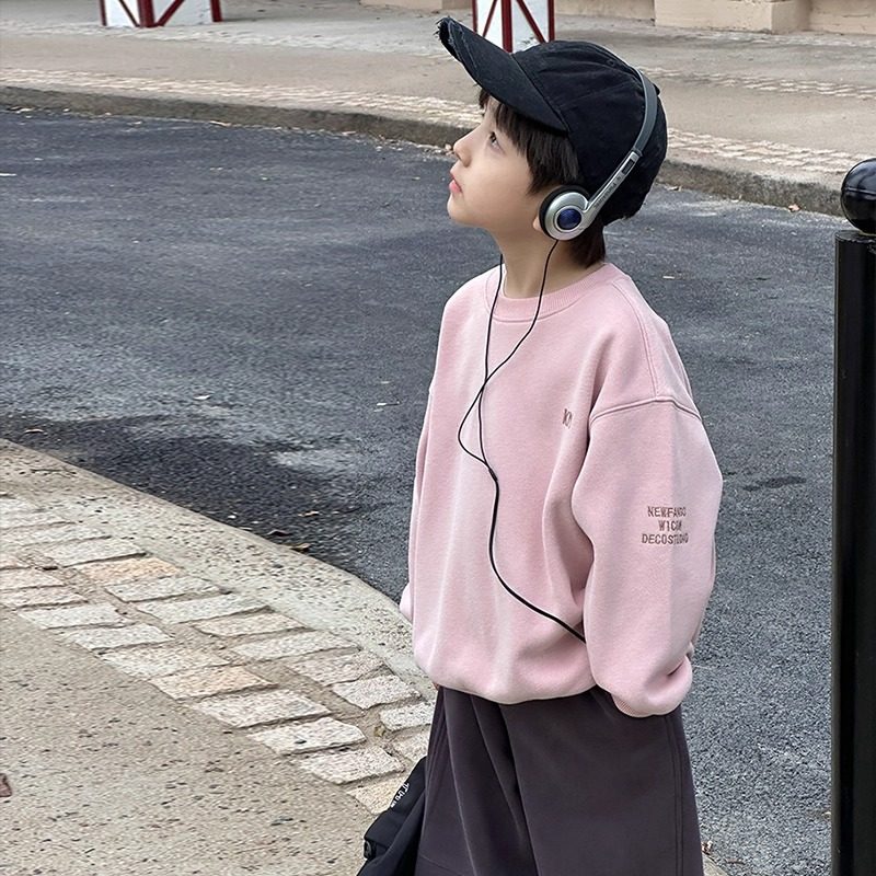 📚 日本JGYPDM2026新款男童加绒卫衣冬季加厚一体绒粉色儿童套头上衣