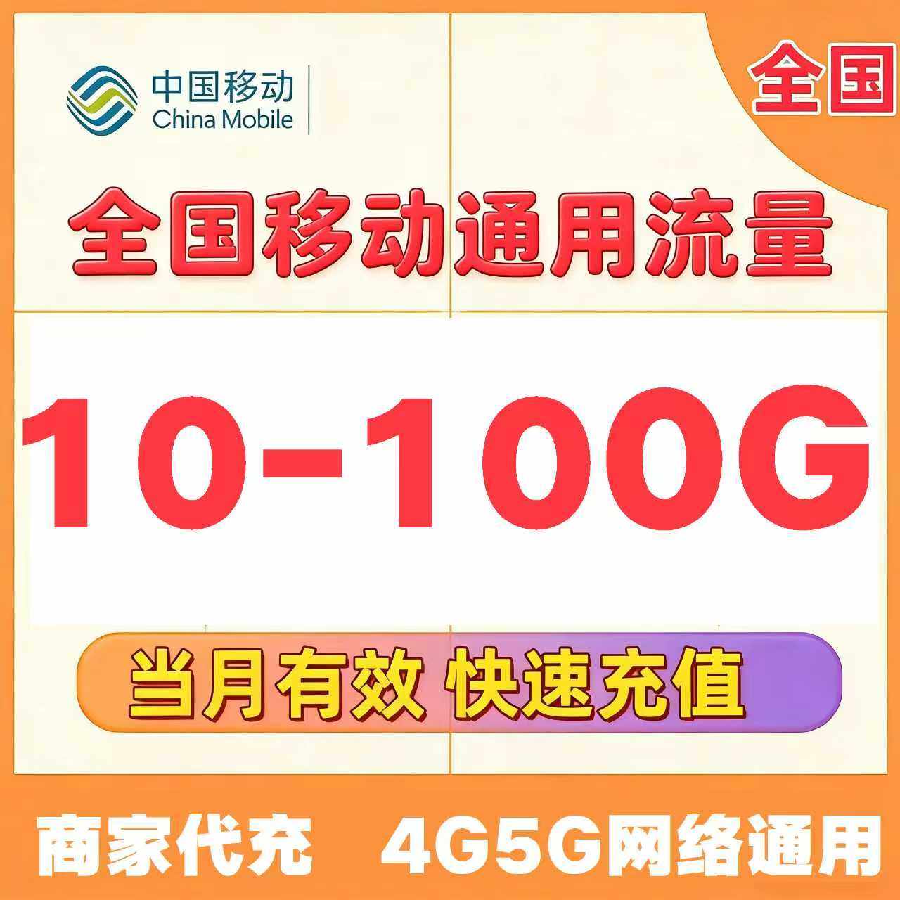 📚 中国移动流量充值10G100G上网流量全国通用当月有效4/5G叠加油包Q