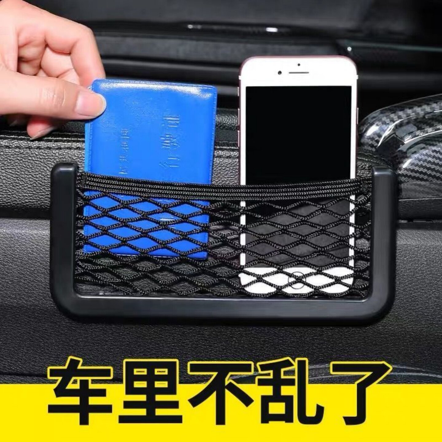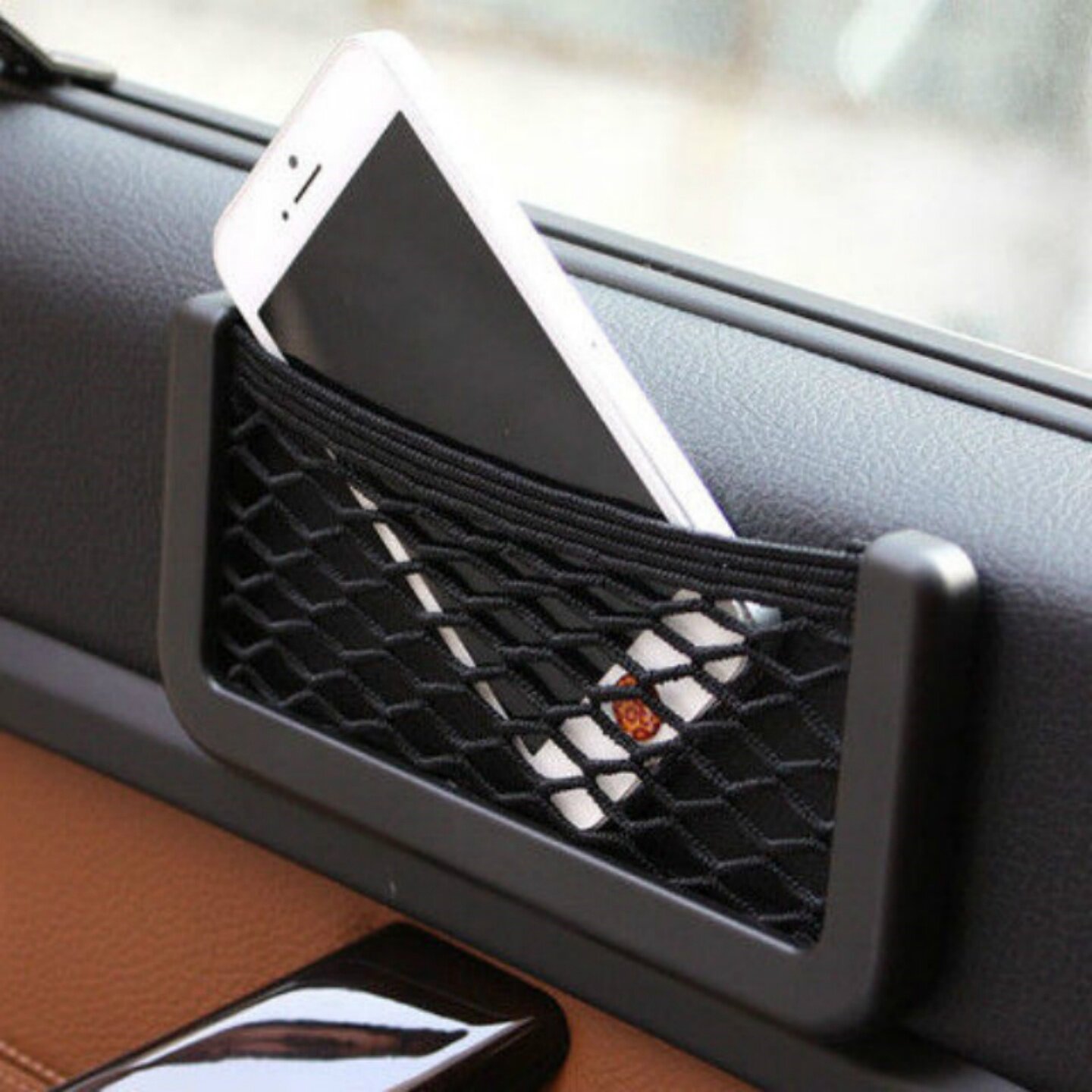 📚 粘贴式车载收纳网兜置物袋手机袋钥匙收纳袋车内放手机放置盒储物