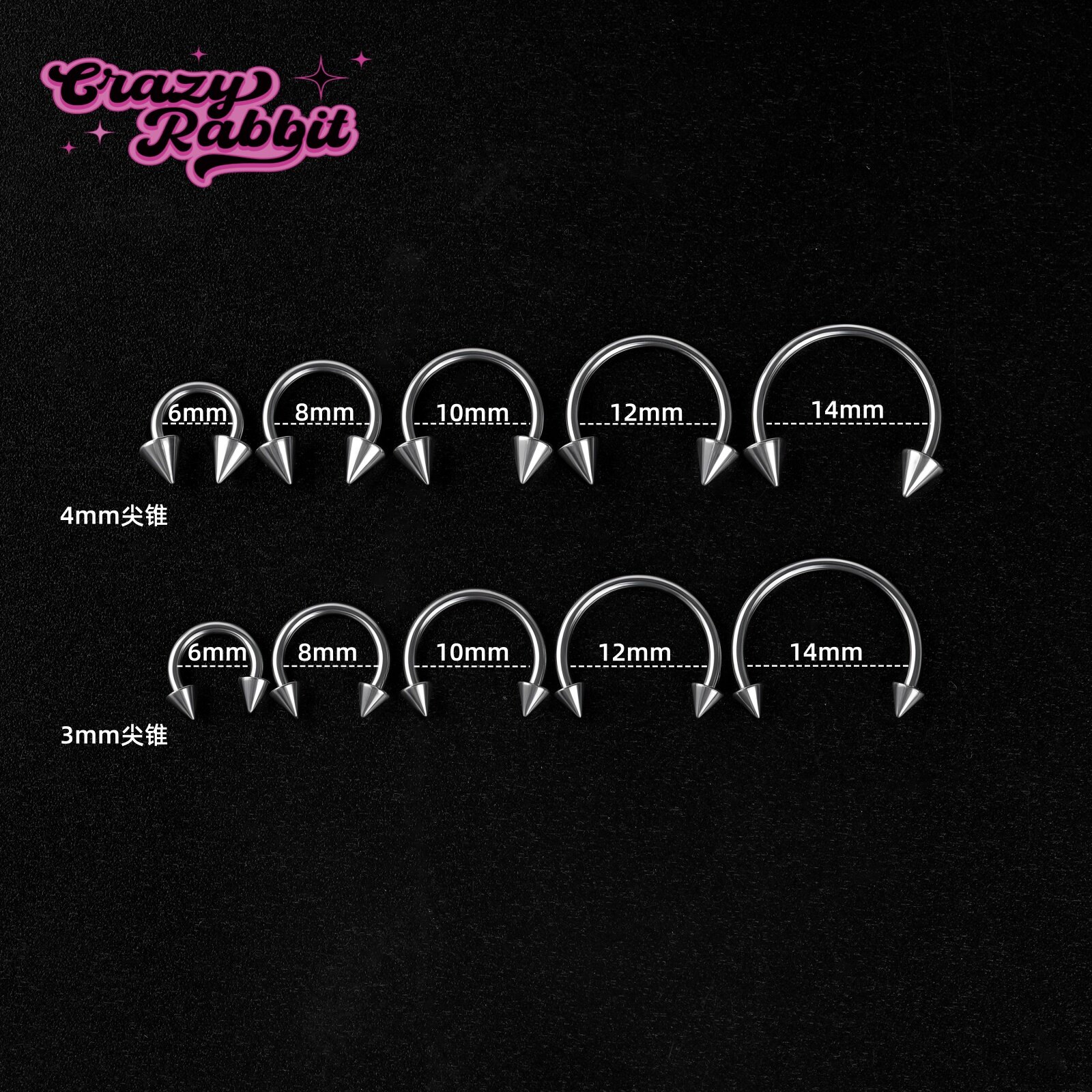 📚 CrazyRabbit 钛合金耳骨环小众设计马蹄环唇环尖锥圆球鼻环耳环女