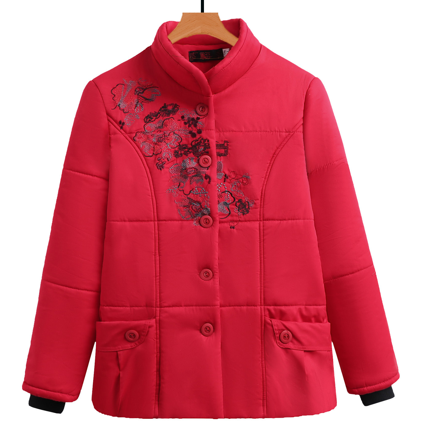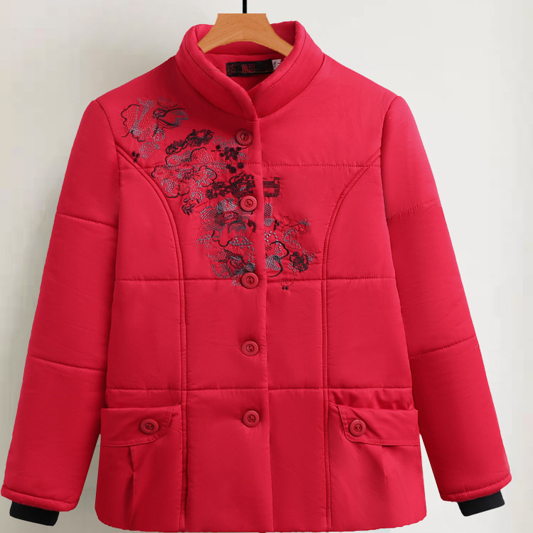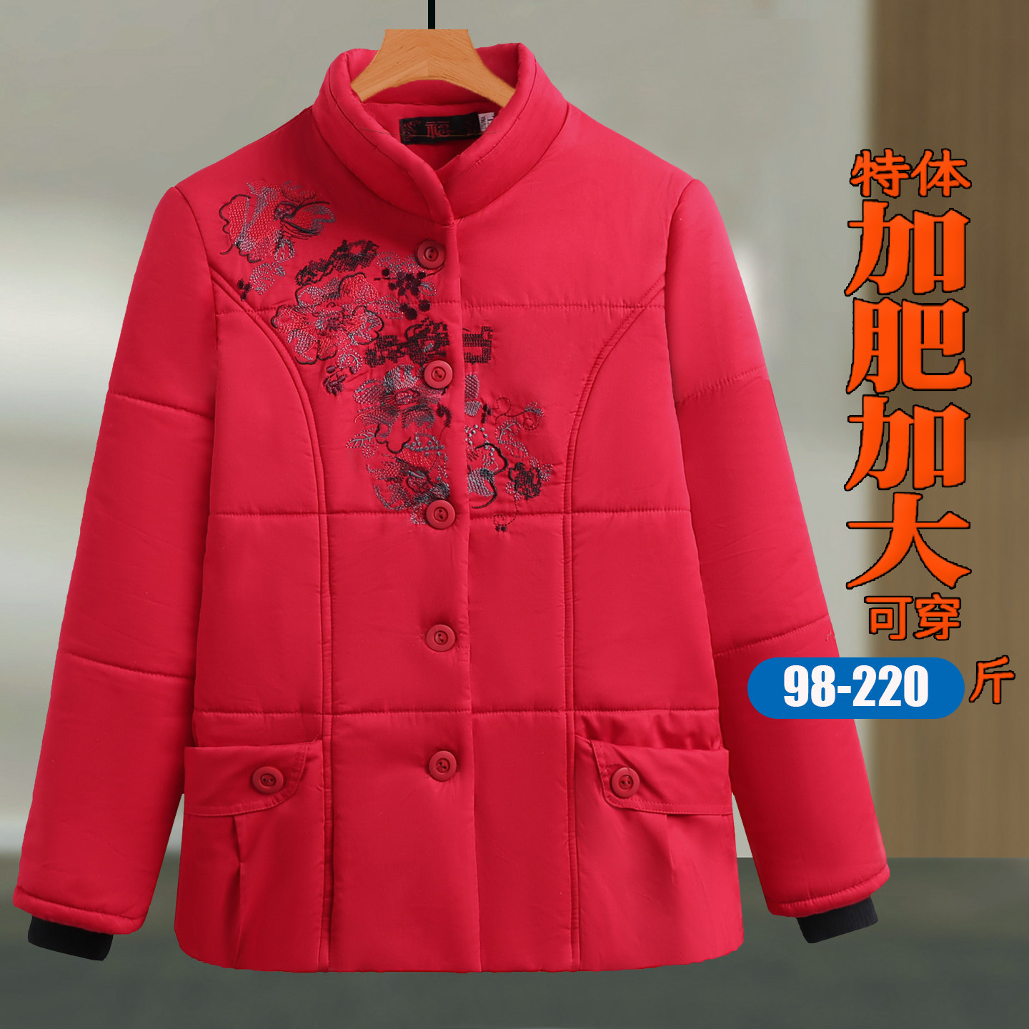 📚 大码妈妈棉衣外套短款轻薄棉袄婚庆衣服中老年奶奶本命年红色棉服