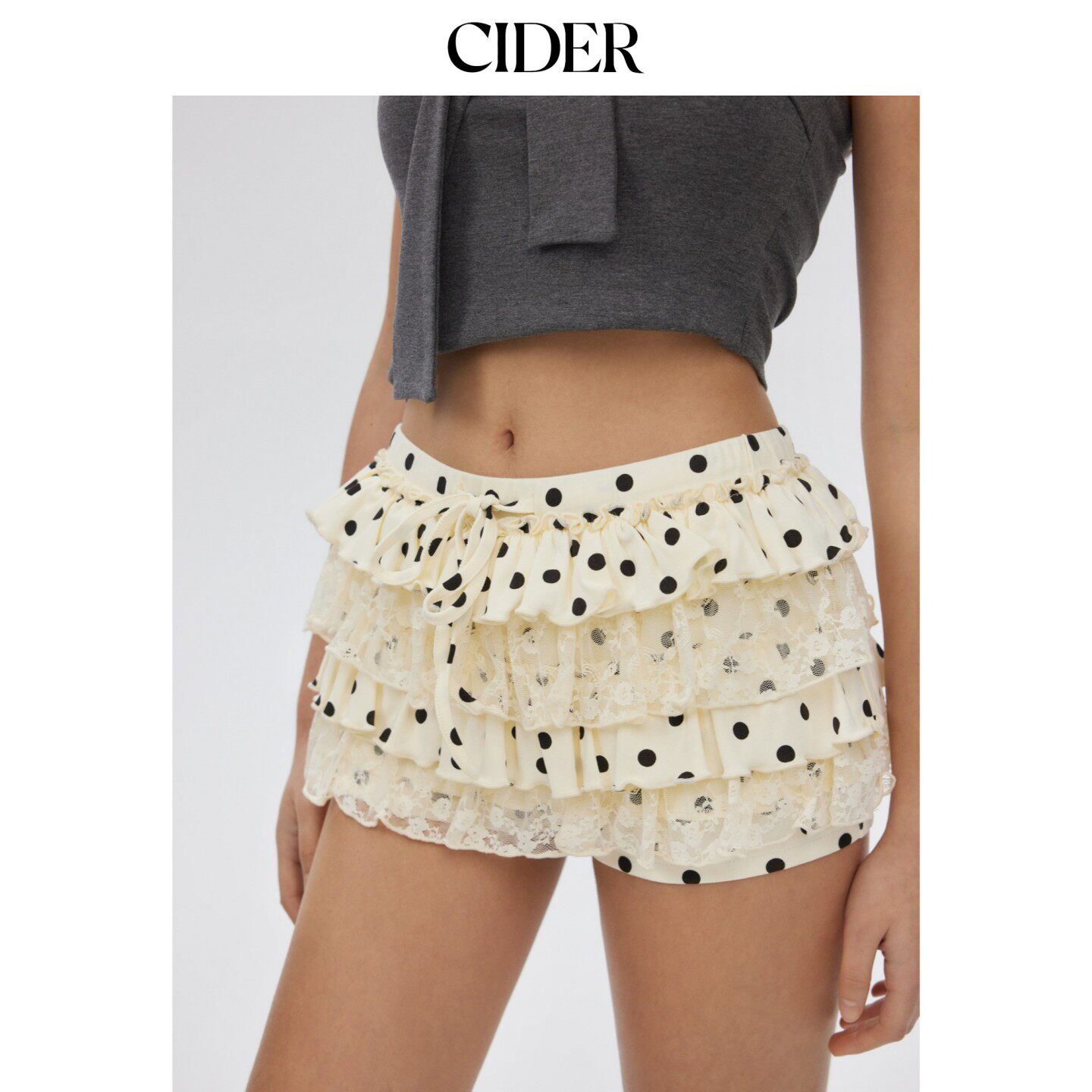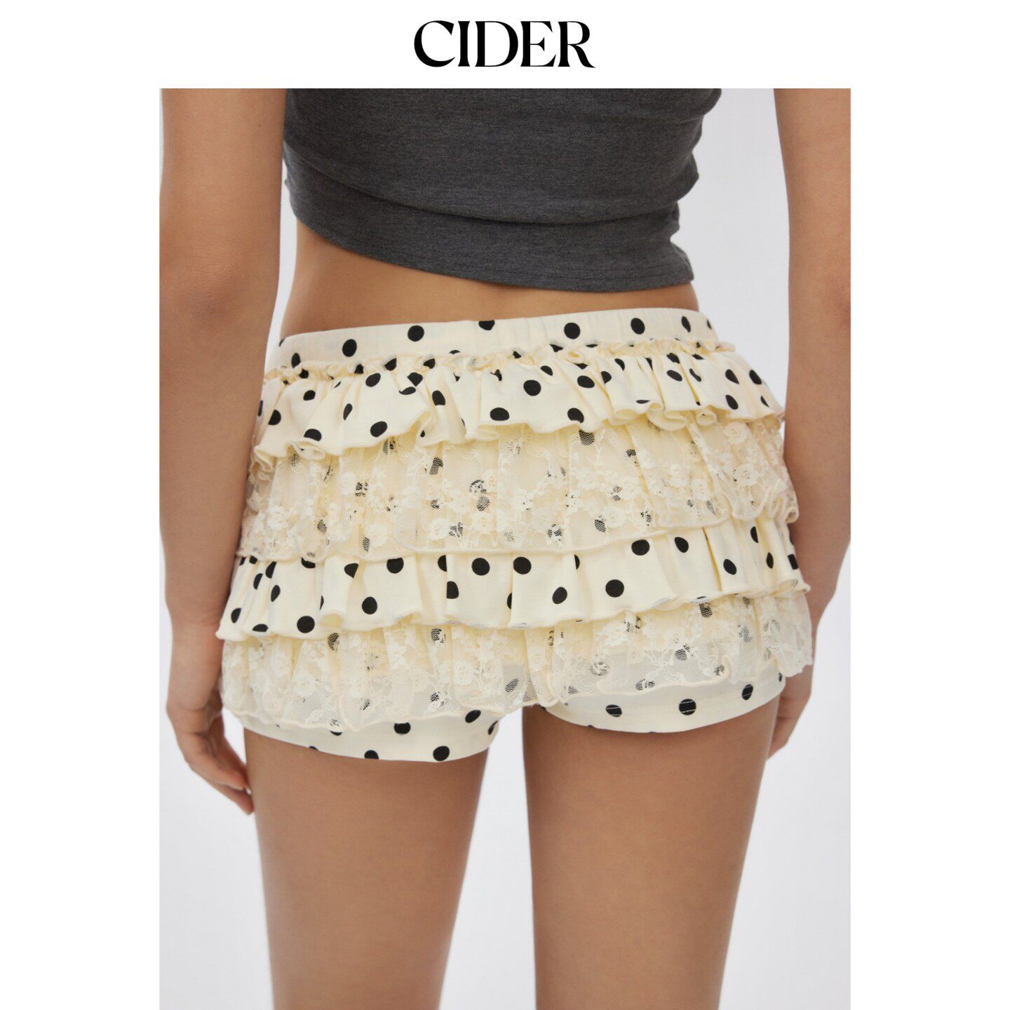 📚 【明星同款】CIDER2026新品雪纺波点蕾丝层叠迷你短裙裤115217106
