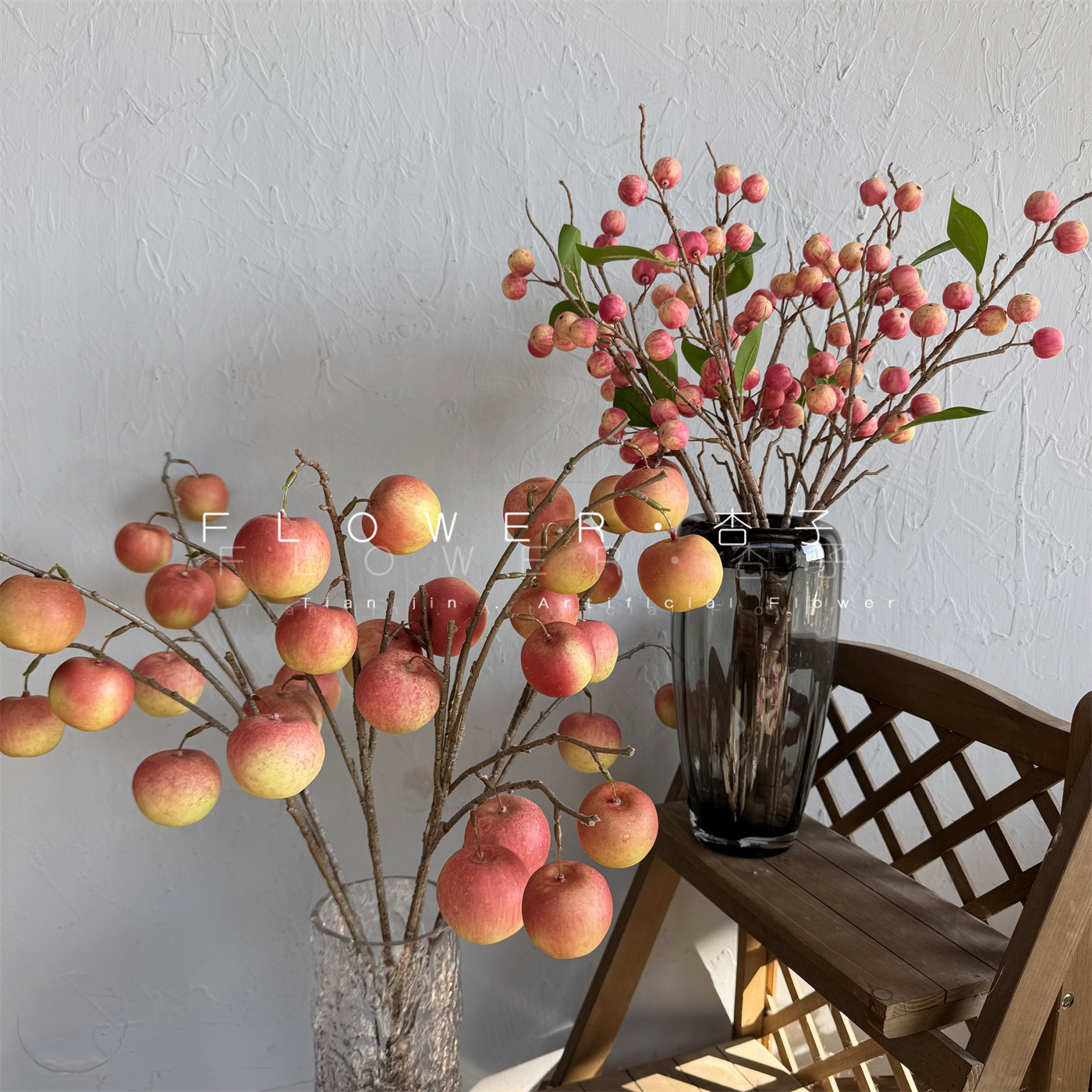 📚 轻奢高端小苹果仿真果实樱桃假树枝客厅餐桌酒店装饰美陈海棠果