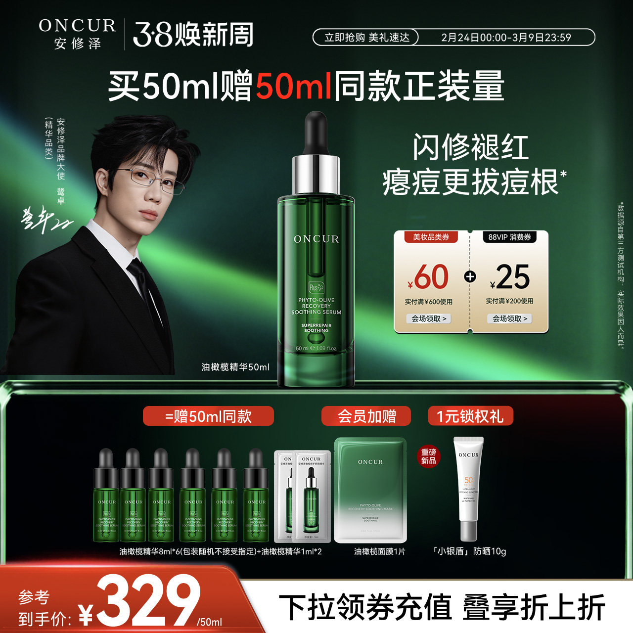 19¥ HU591 K13kUta3eJX¥ https://m.tb.cn/h.i18nTdI 【鹭卓同款】安修泽油橄榄精华液祛痘修红面部精华液保湿舒缓修护 --------------------- 【原售价】599元 【现售价】249元。