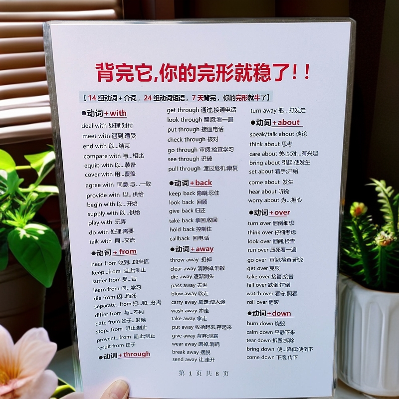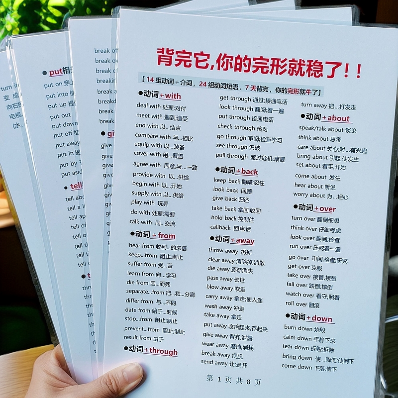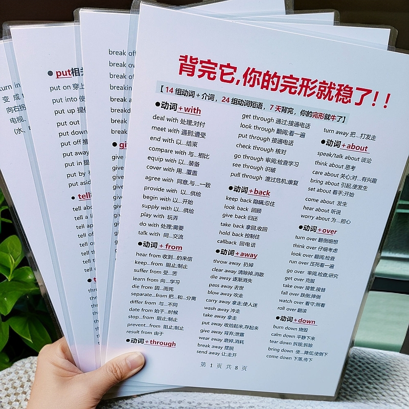 📚 初中生英语完形填空动词介词助词短语汇总大全备考复习训练防水卡