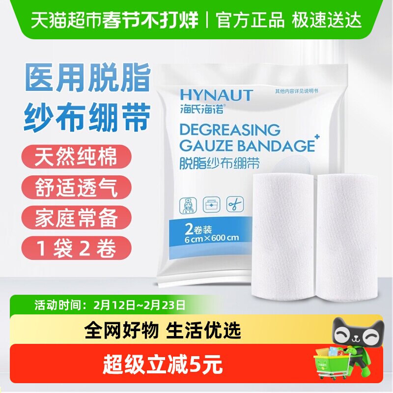 📚 海氏海诺医用脱脂纱布绷带卷家用伤口包扎固定带缠手敷料块非无菌