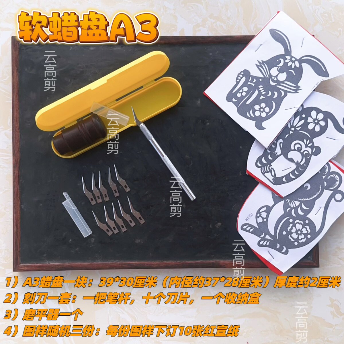 📚 手工剪刻纸黑蜡盘蔚县传统蜡盘软硬适中不油不粘刀刻刀刻纸工具
