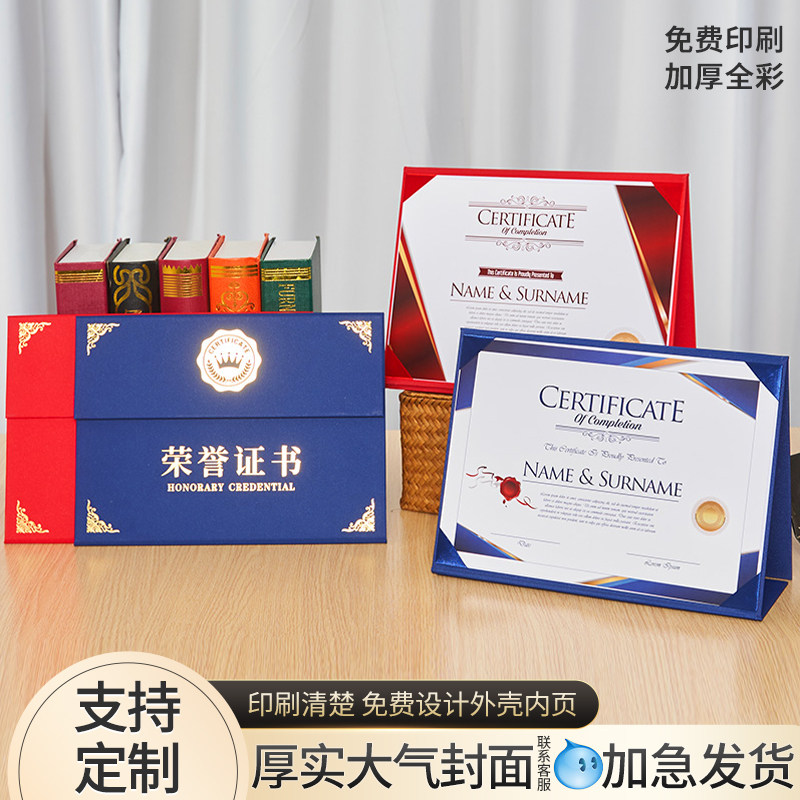📚 高档荣誉证书蓝色荣誉证件书外壳台式企业聘书结业毕业培训比赛学员颁奖定制封皮打印会员证高级封面奖状a4壳