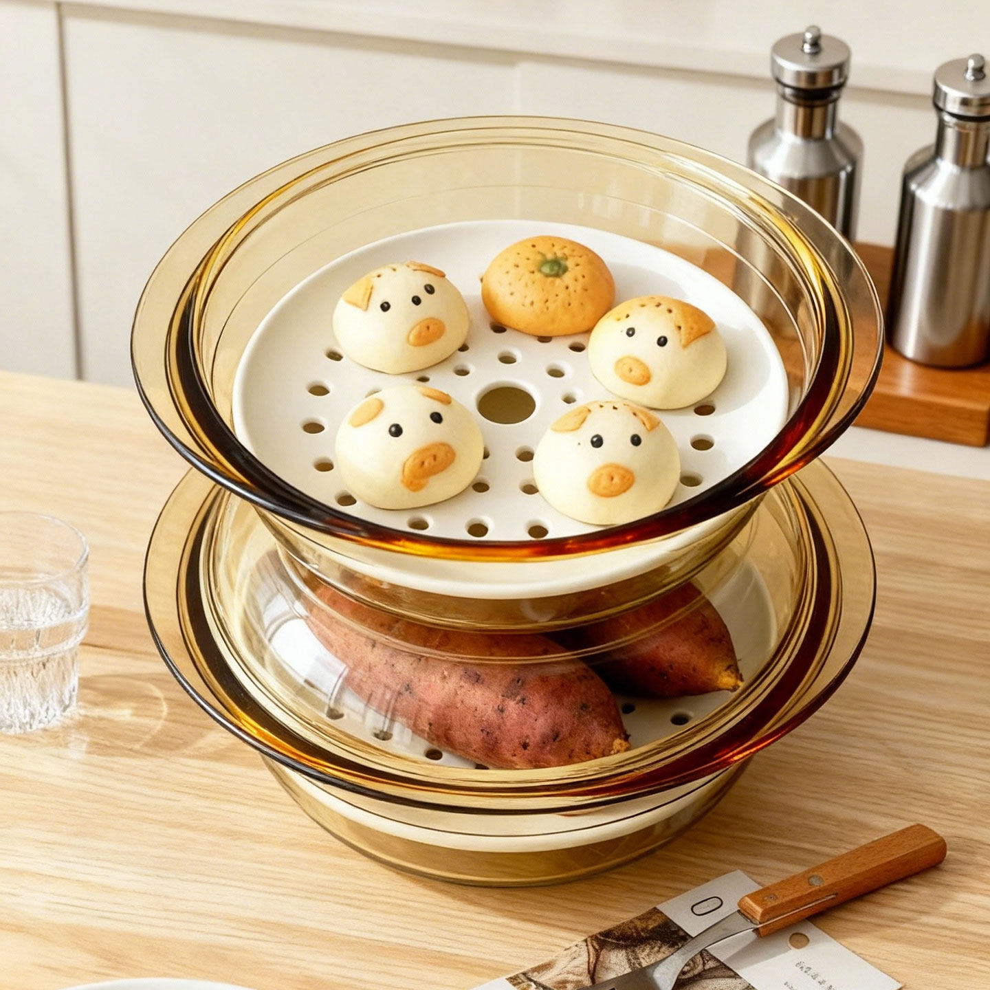 📚 陶瓷多孔蒸盘蒸架沥油海鲜沥水饺子盘蒸包子盘子微波炉加热蒸笼