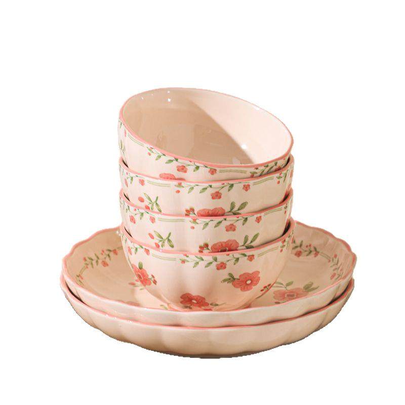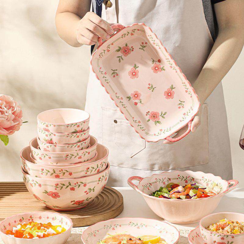 📚 High Aesthetic Fresh Ceramic Bowl and Plate Set for Home Use