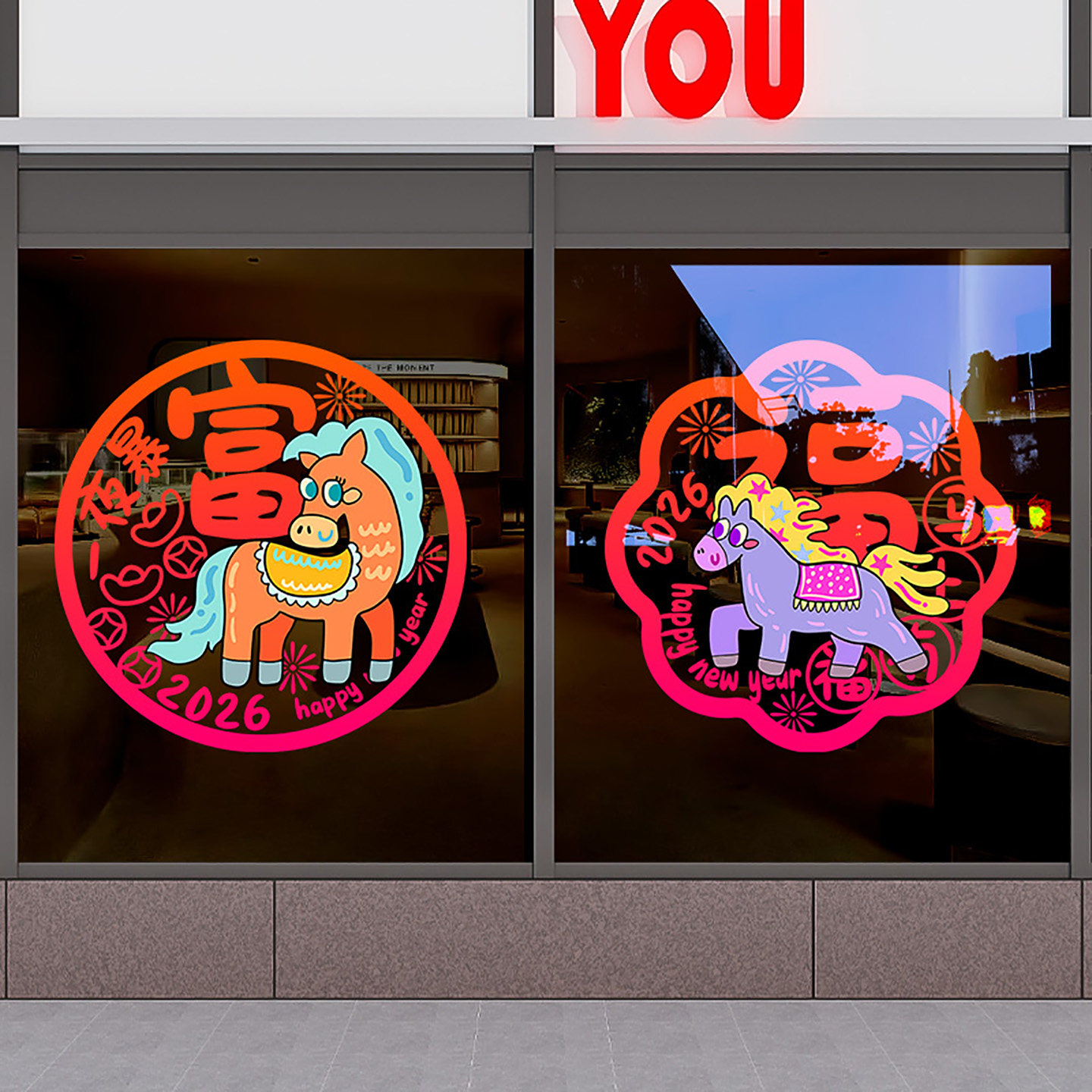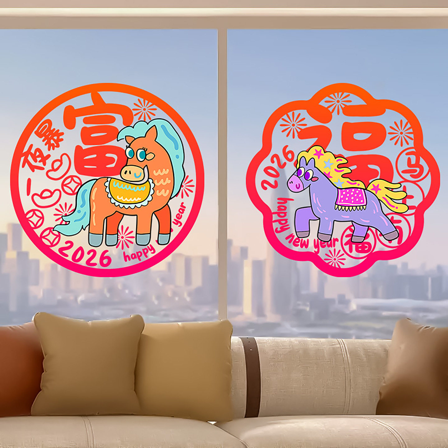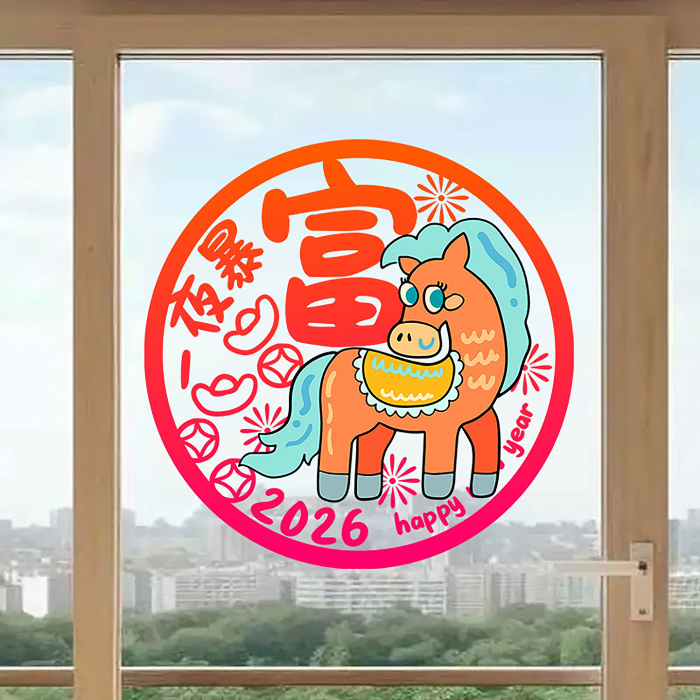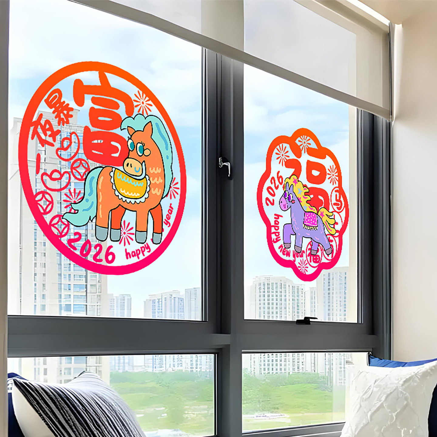 📚 新年装饰培训机构静电贴纸布置窗户防水玻璃家用春节窗花马年门贴
