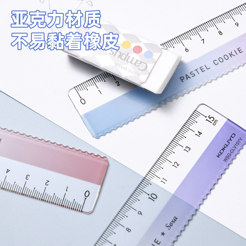📚 2022日本kokuyo国誉新品淡彩曲奇晴空直尺小学生透明亚克力带波浪线尺子15cm多功能加厚数学绘图测量尺