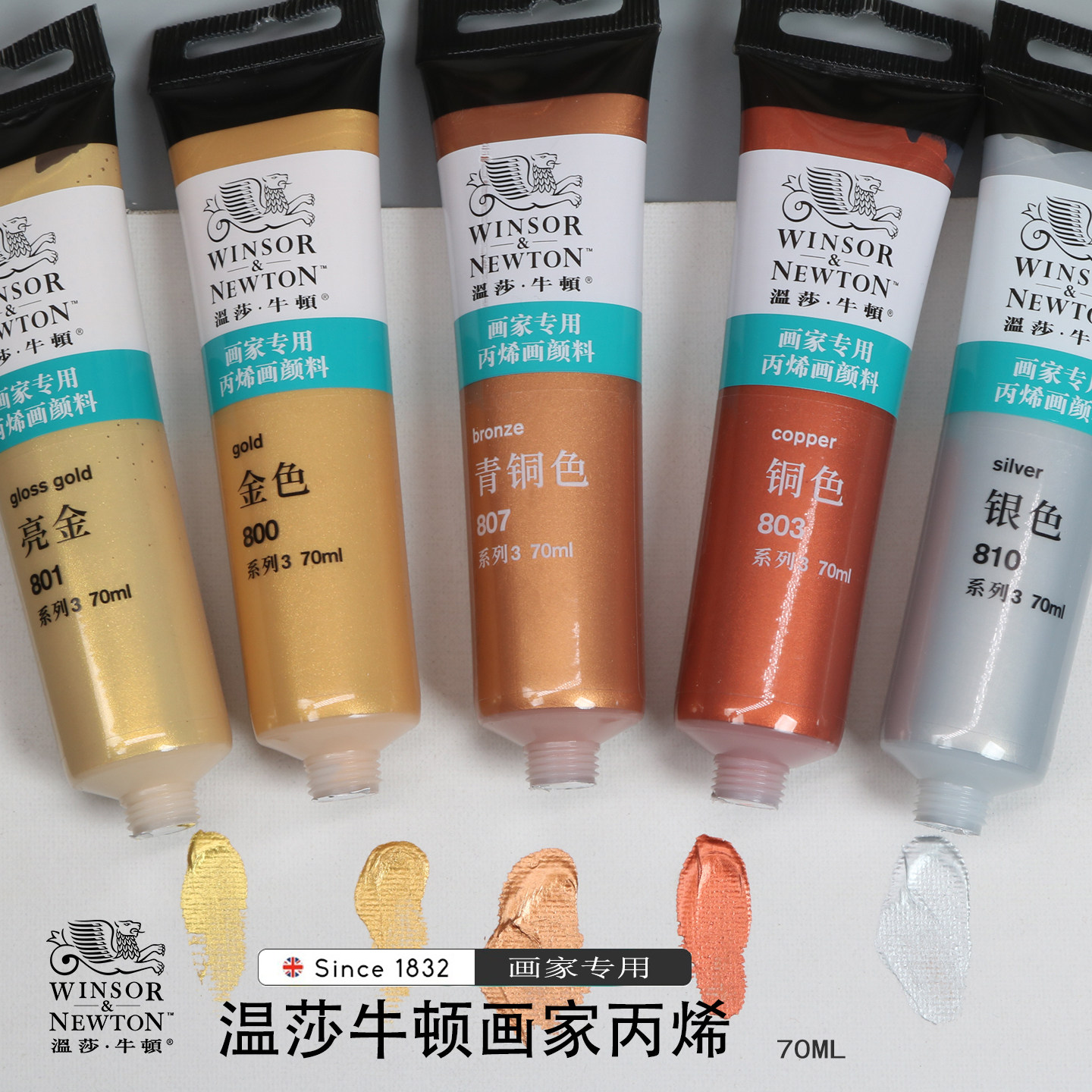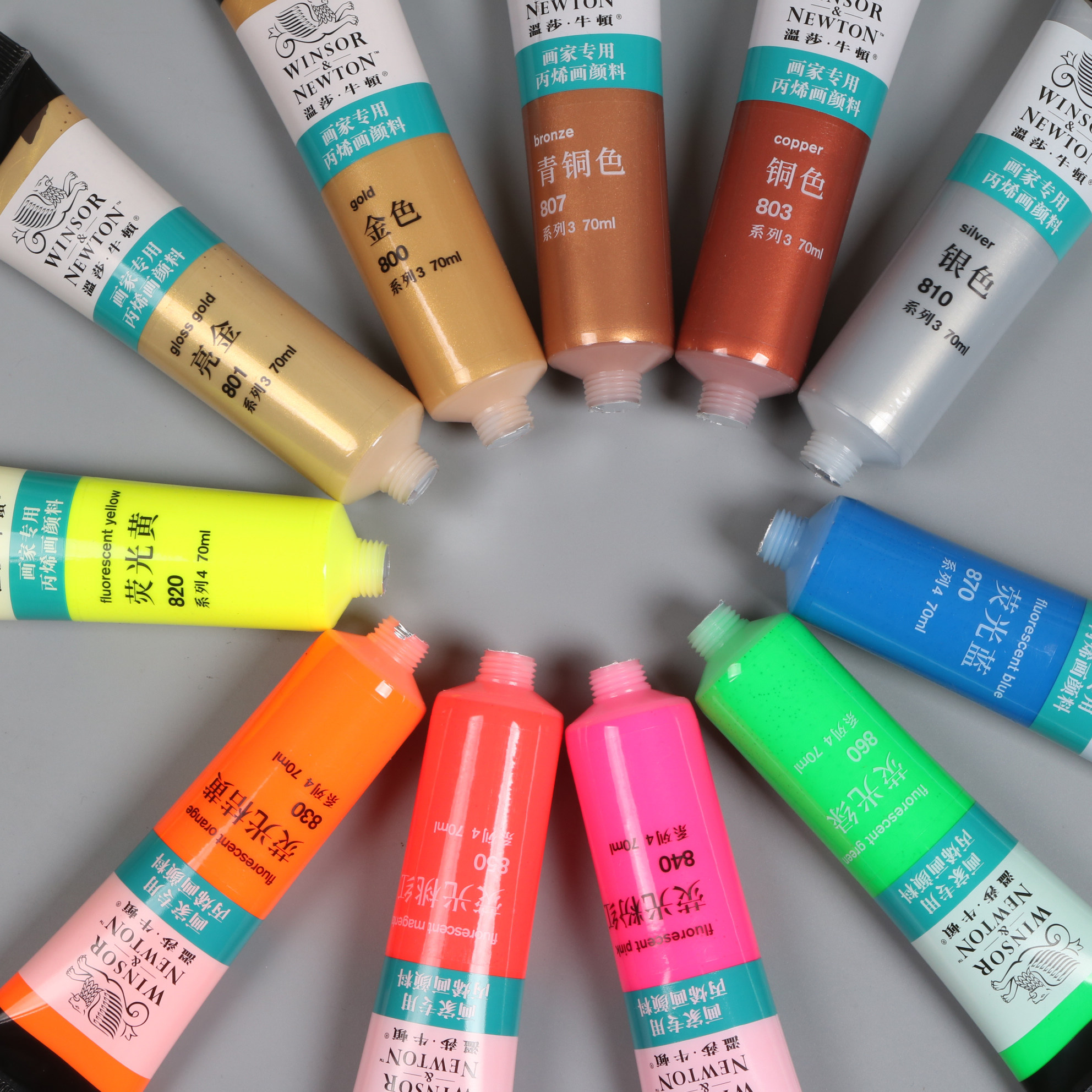 📚 温莎牛顿画家专用丙烯颜料防水防晒套装70ml12 24色管状绘画美甲石英砂丙烯diy写生便携金色金属铜钛白荧光色
