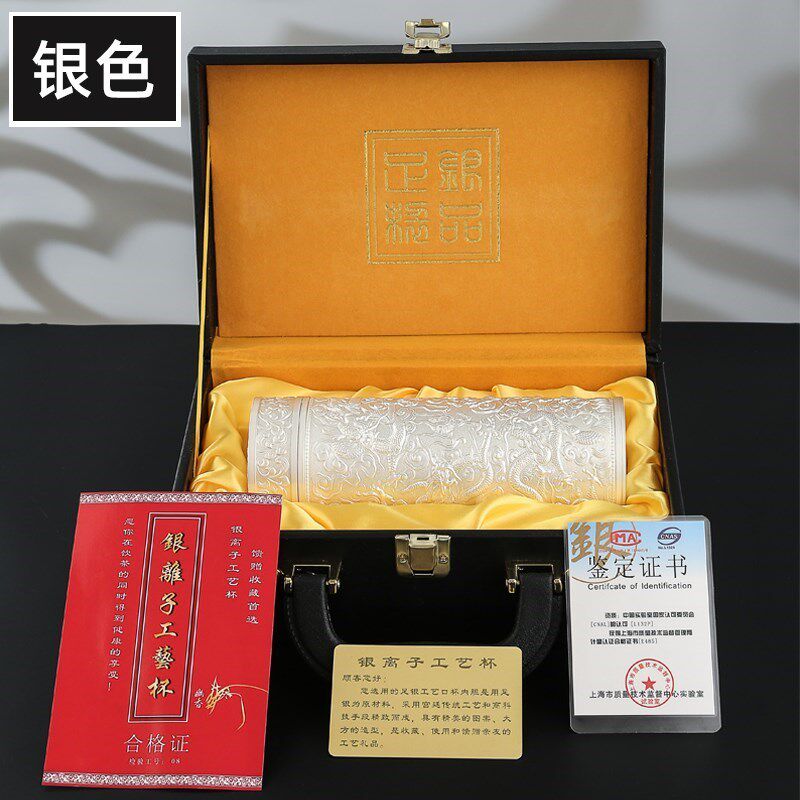 📚 银杯子s999纯银保温杯九龙保健杯男女士泡茶商务高档礼品杯子刻字